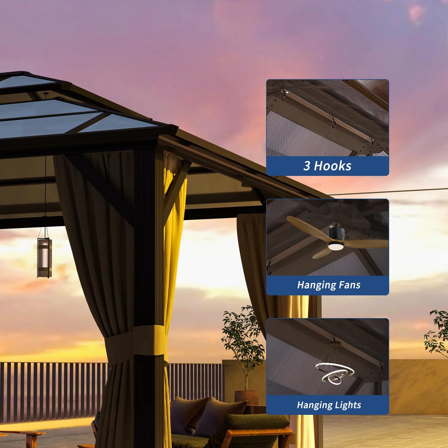 Details: Jolydale Hardtop Gazebo, 10FTx12FT Polycarbonate Double Top Canopy, Aluminum Frame Permanent Pavilion with Curtains and Netting, for Lawns, Patios, Gardens
