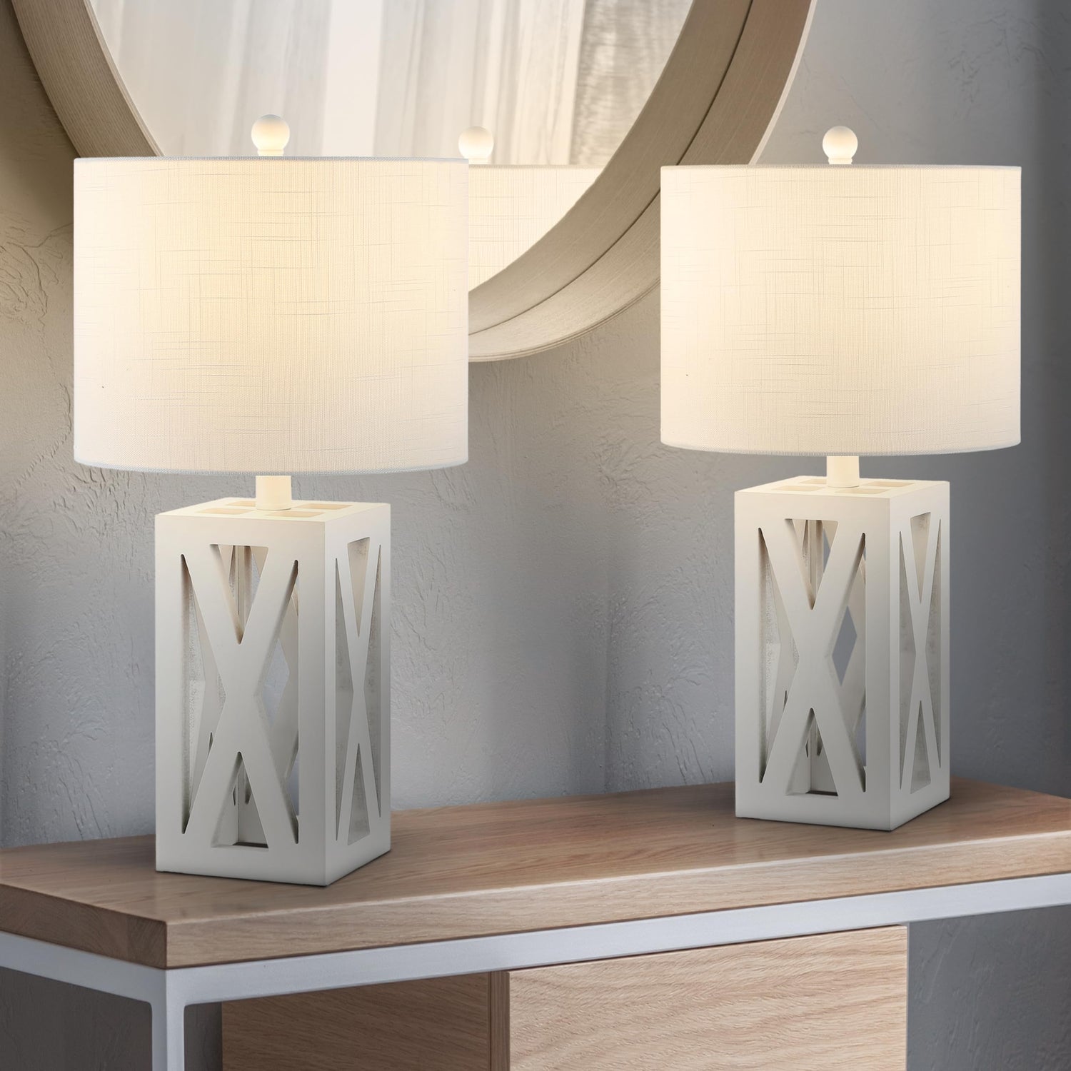 JONATHAN Y JYL1062B-SET2 Stewart 21.5" Wood LED Table Lamp Farmhouse, French Country, Rustic, Bohemian, Bedroom, Living Room, Office, College, Bookcase, White (Set of 2)