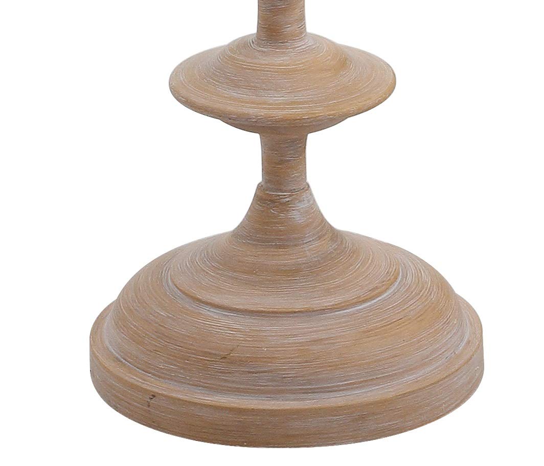 Details: Casted in resin for extra durability, but with the natural appearance of wood, this shapely lamp base adds flair to any vignette. Simulating the classic spindles and turned wood techniques of skilled artisans, the curved base is topped with a classic linen drum shade. This floor lamp operates via a foot-step switch on the silk-wrapped cord.