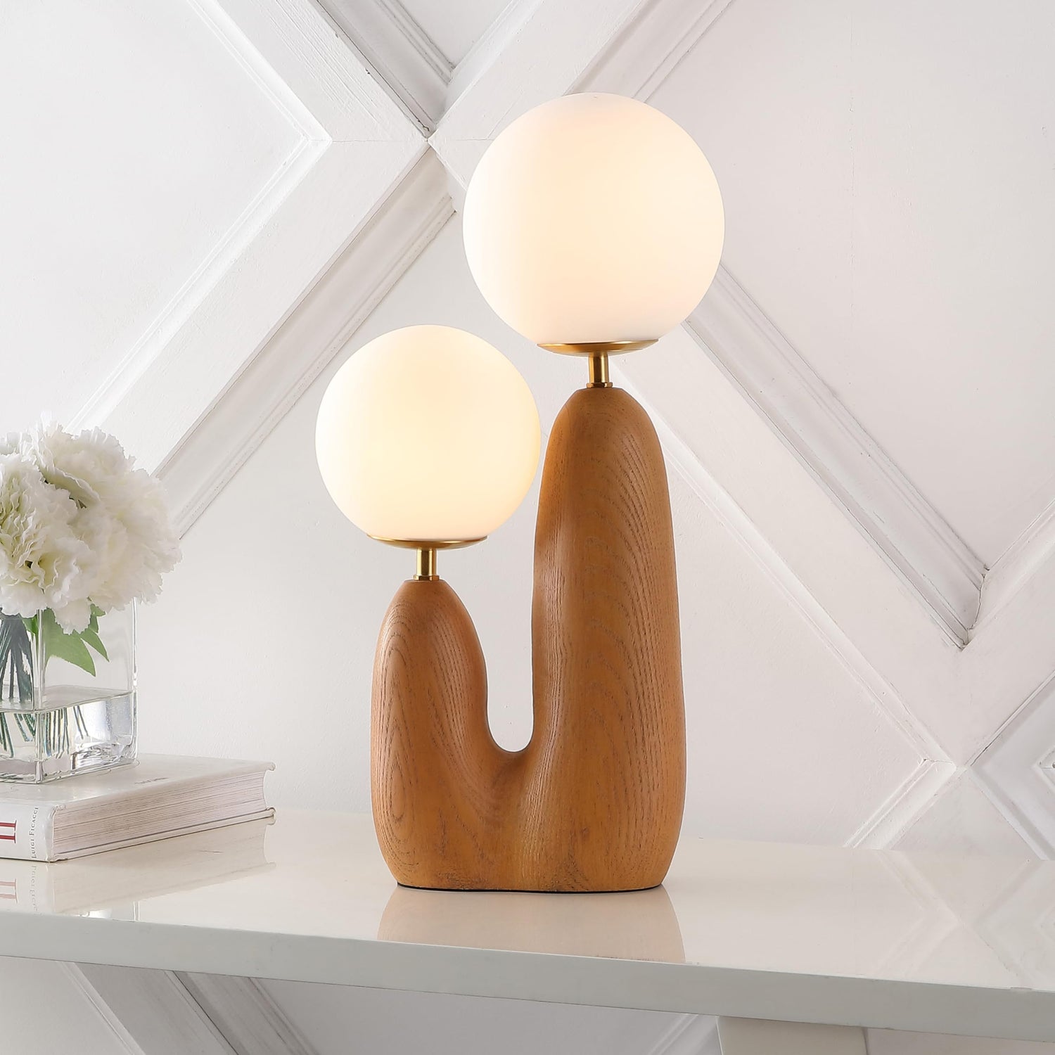 JONATHAN Y JYL4065A Oda 17.75" 2-Light Modern Bohemian Resin/Iron/Frosted Glass Danish Cactus LED Table Lamp, Brown Wood Finish, for Living Room, Office, Bedroom
