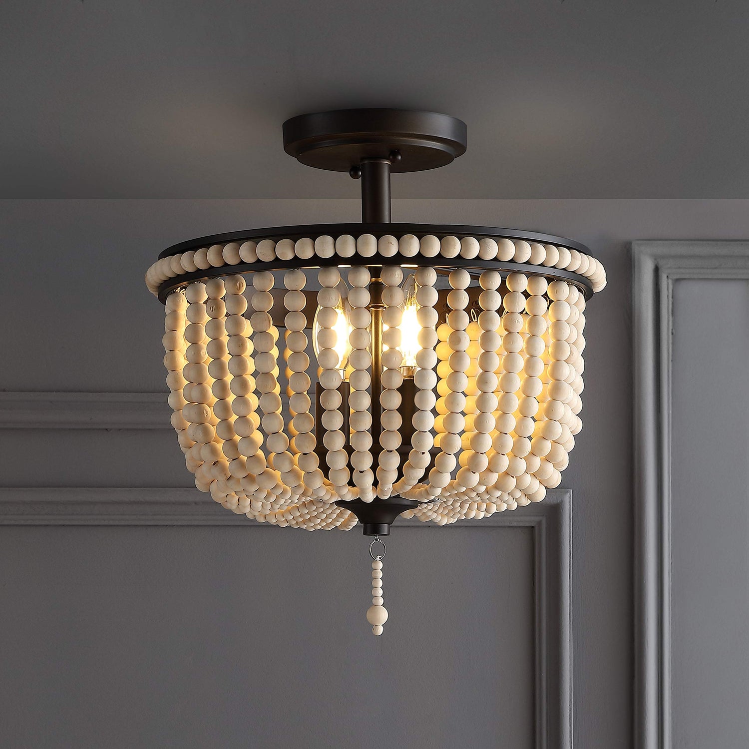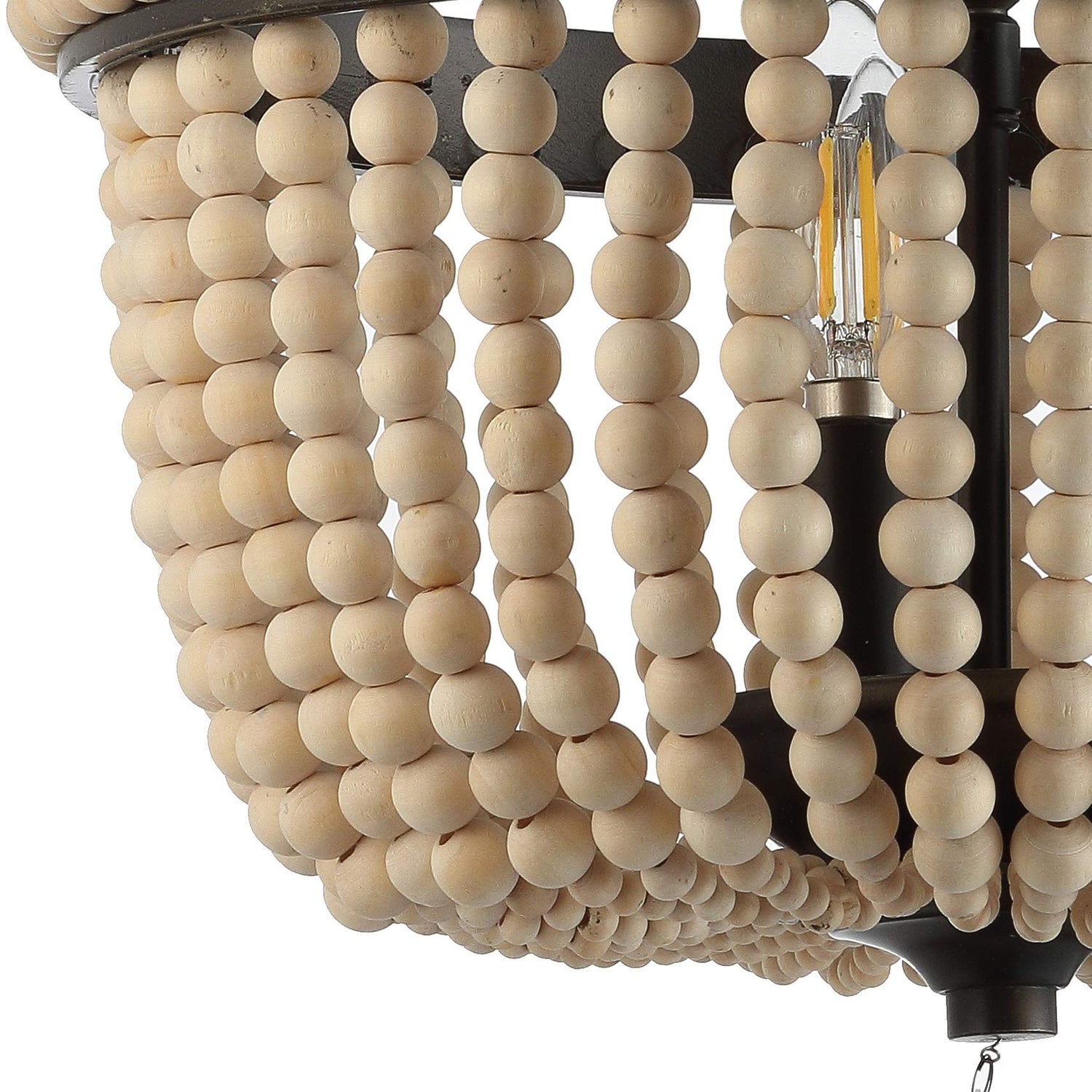 JONATHAN Y JYL9020A Allie 14" 3-Light Bohemian Farmhouse Wood Bead/Iron LED Flush Mount Transitional Rustic Kitchen Hallway Bathroom Bedroom Entryway Foyer, Black/Light Taupe