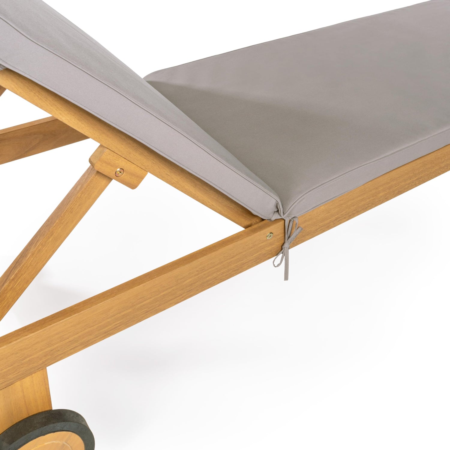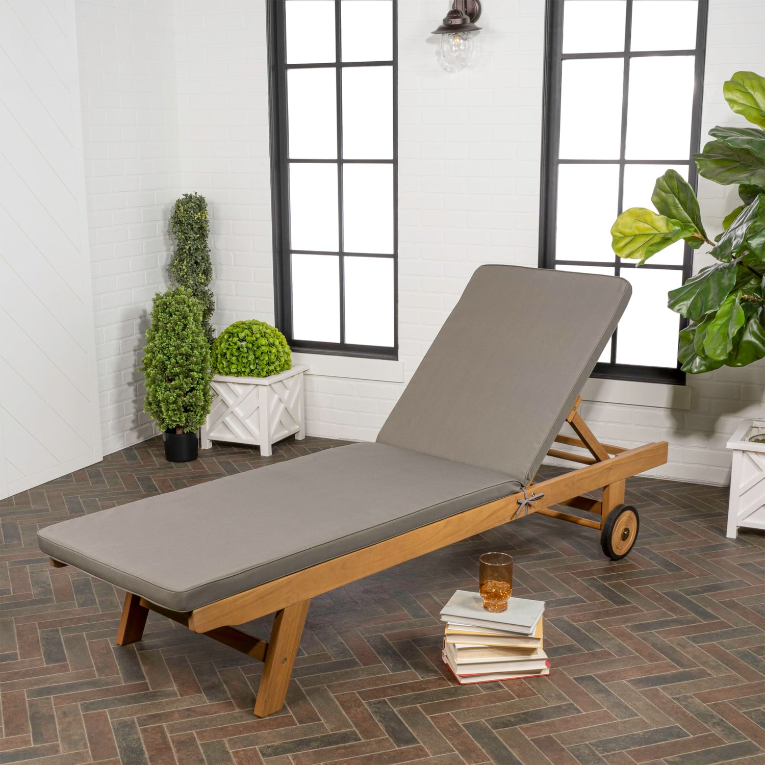 JONATHAN Y LNG1000D Mallorca 77.56"x23.62" Modern Classic Adjustable Acacia Wood Chaise Outdoor Lounge Chair with Cushion & Wheels Coastal, Bohemian, Minimalist, Traditional, Dark Gray/Natural