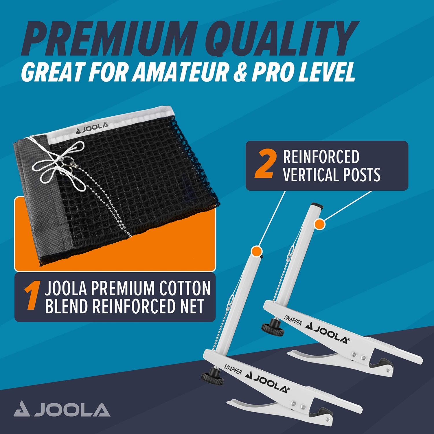 JOOLA Snapper Professional Table Tennis Net and Post Set - Portable and Easy Setup 72" Regulation Size Ping Pong Spring Activated Clamp Net, Silver