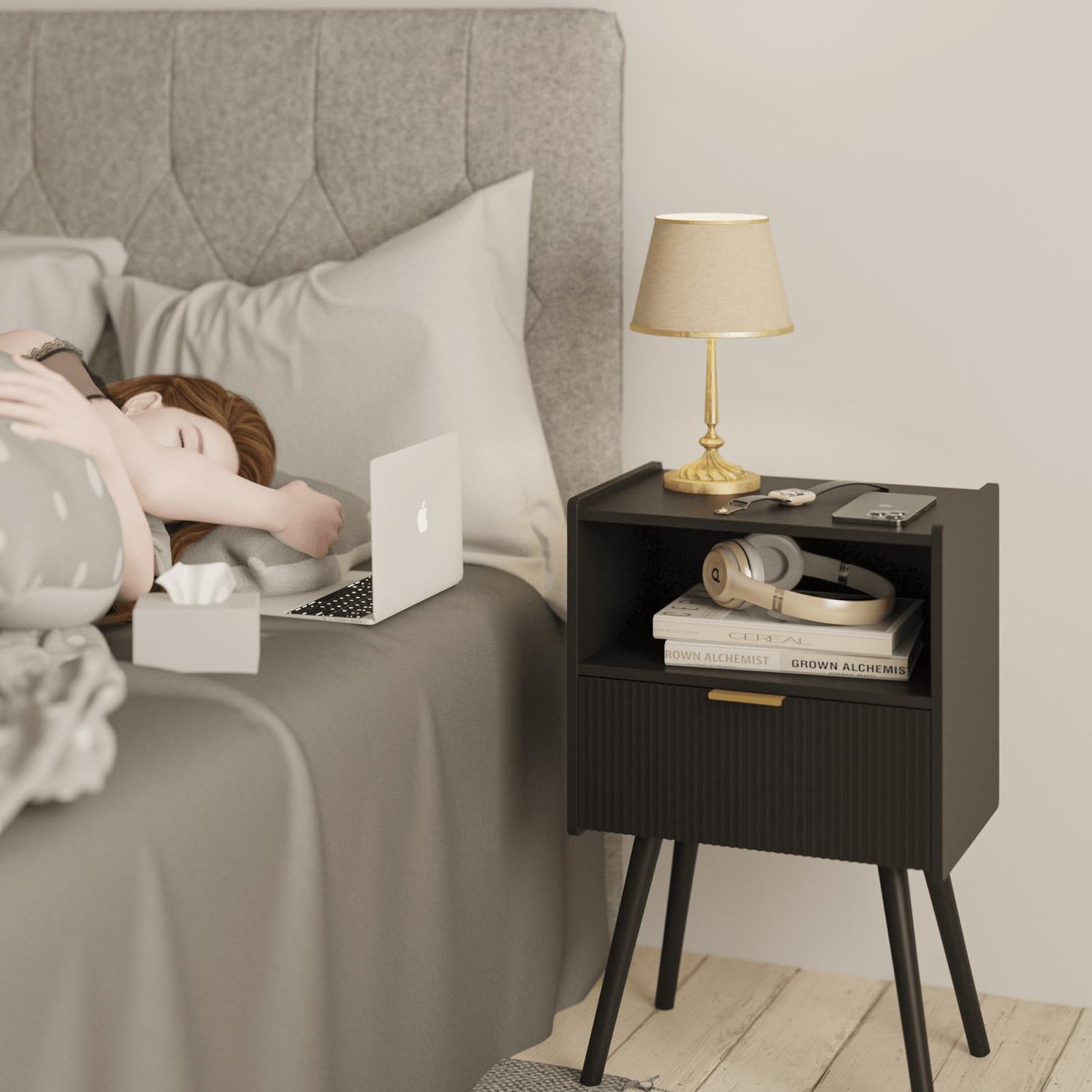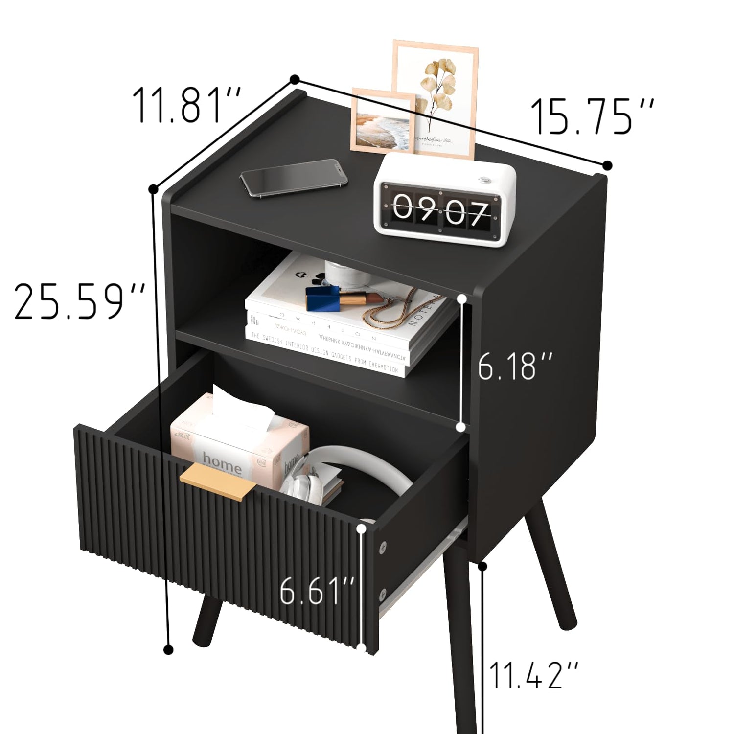 - Embrace an Modern Vibe:Classic Black with vertical grain taps,this nightstand emits an modern vibe in your bedroom. It can also catch eyes as a side table or end table throughout the home,adding elegance to home life.