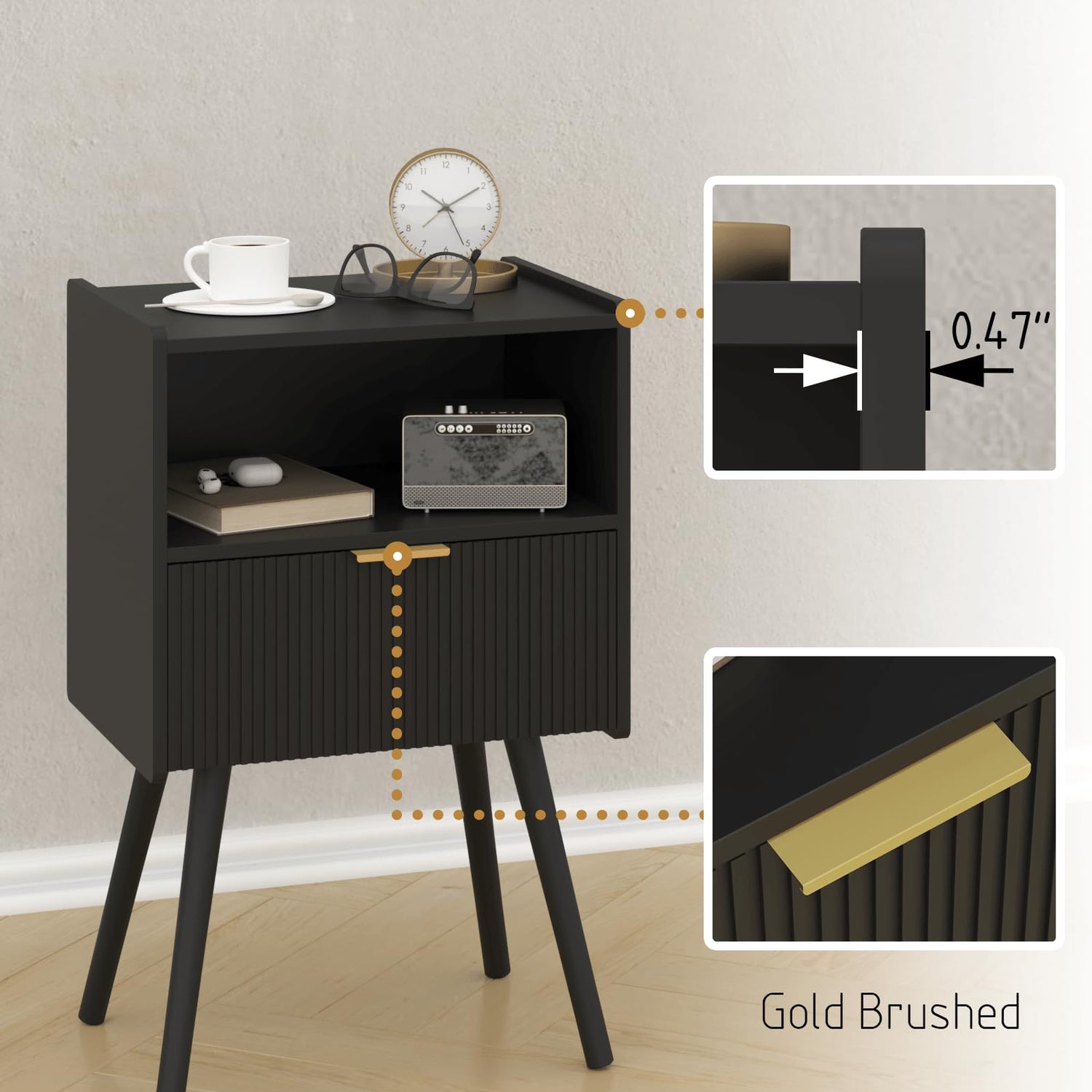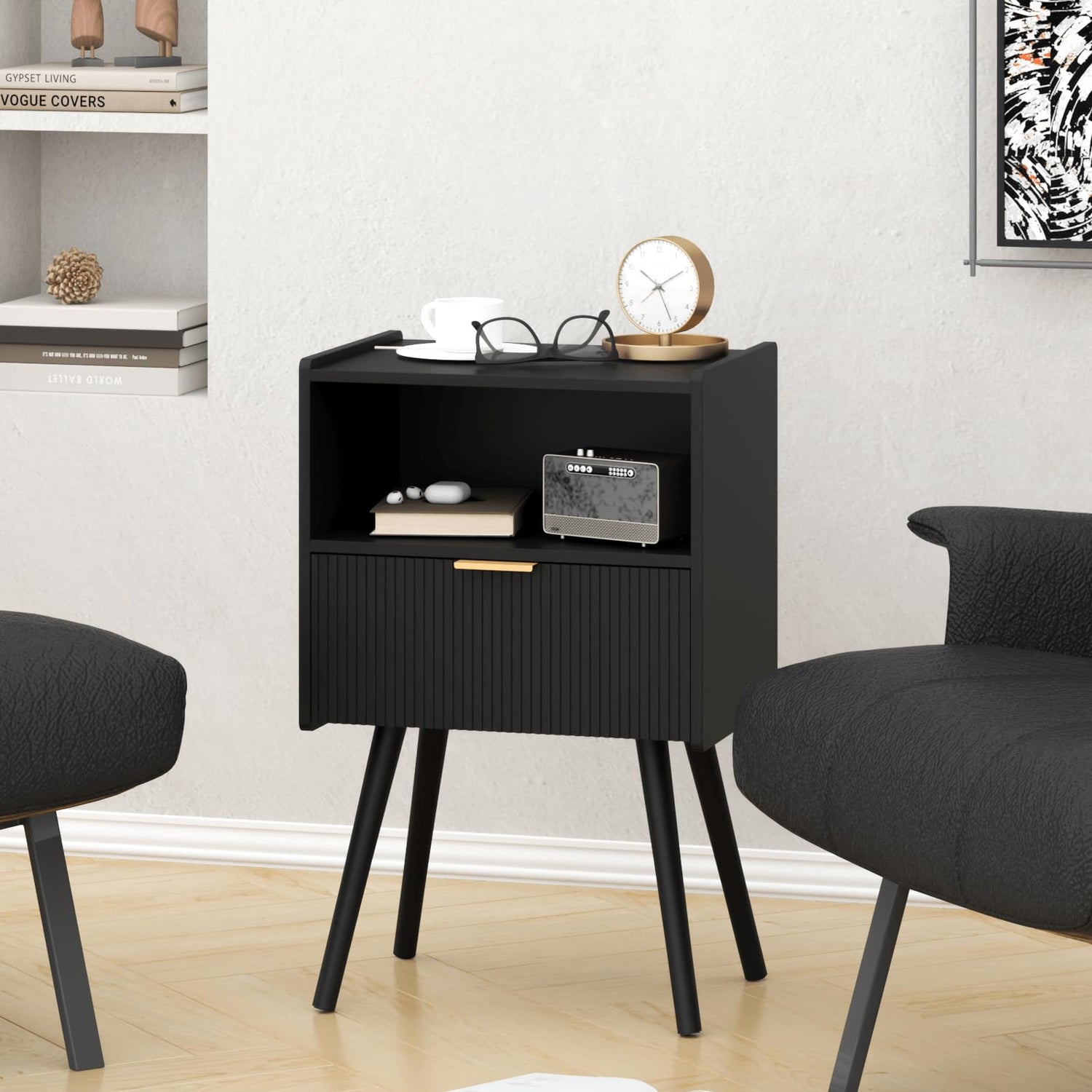 JOONEE Black Nightstand,Modern Bedside Table with Storage Drawer and Open Wood Shelf, for Living Room, Bedroom and Small Spaces, Accent Night Stand with Solid Wood Legs, Easy Assembly,Classic Black
