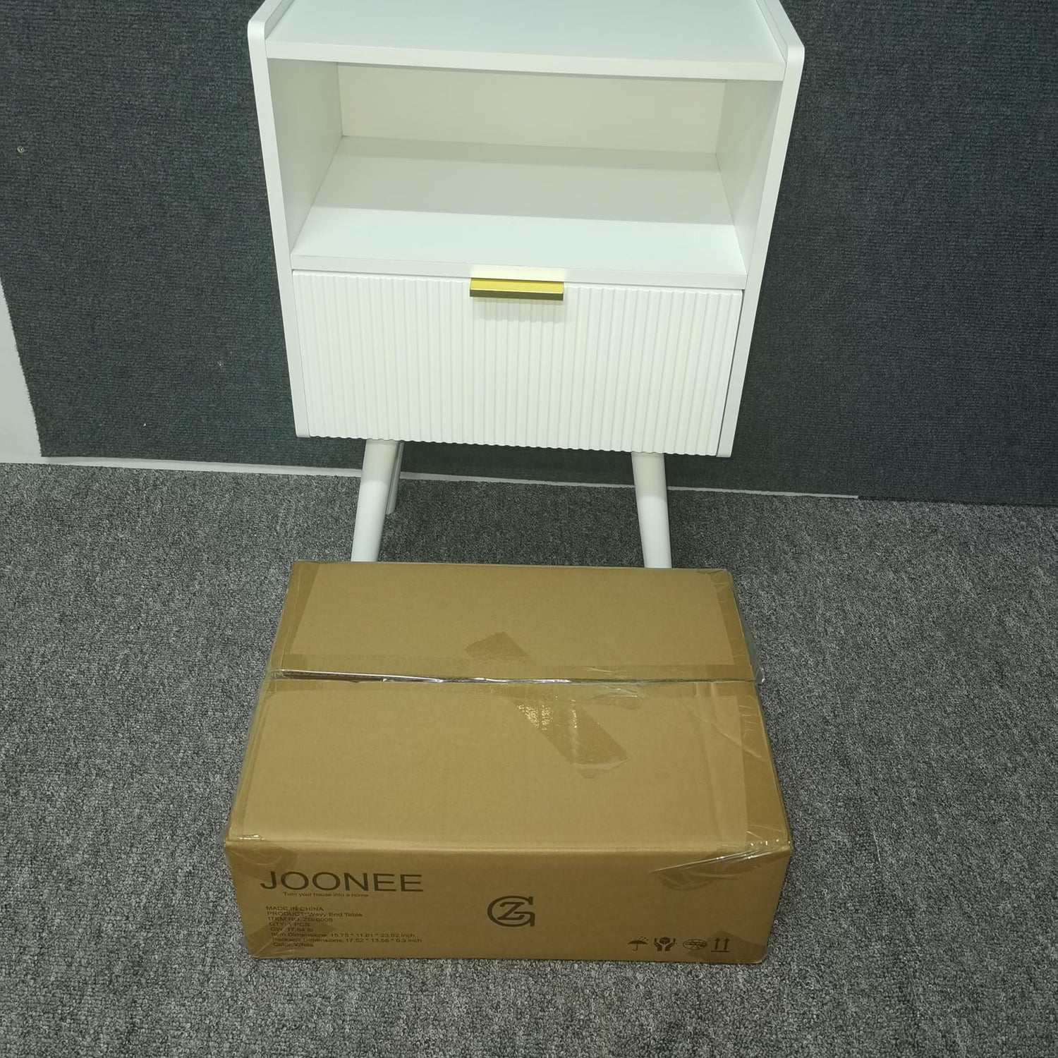 JOONEE White Nightstand,Modern Bedside Table with Storage Drawer and Open Wood Shelf, for Living Room, Bedroom and Small Spaces, Accent Night Stand with Solid Wood Legs, Easy Assembly,Classic White