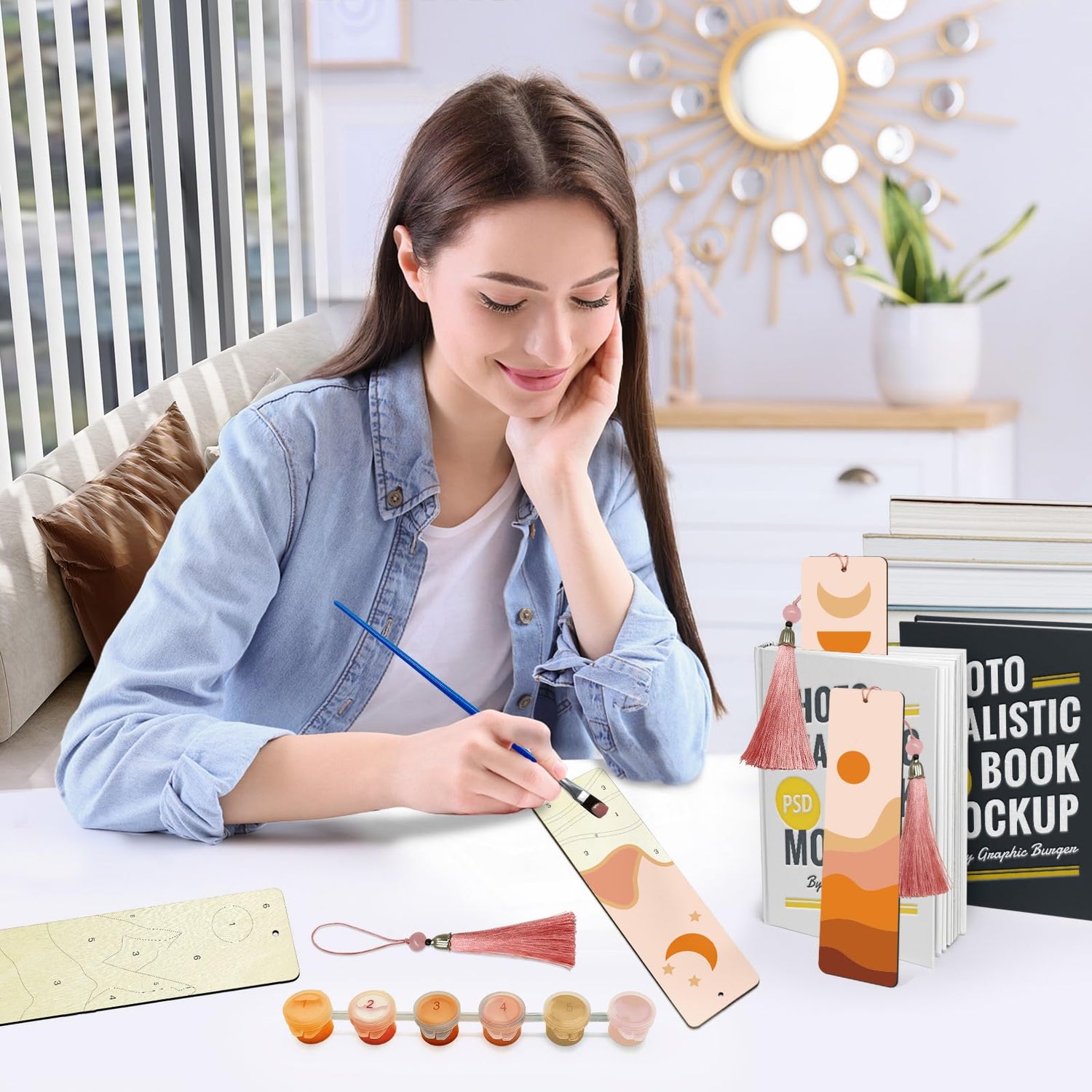 - [ Wood Bookmarks Paint by Numbers Kit ]: This wooden bookmarks paint by numbers kit for adults has a complete tool includes four high-quality wooden bookmarks (7 x 2 inches), four colorful tassels, two paintbrushes, and a set of acrylic paints. Enjoy a fun and relaxing painting experience!