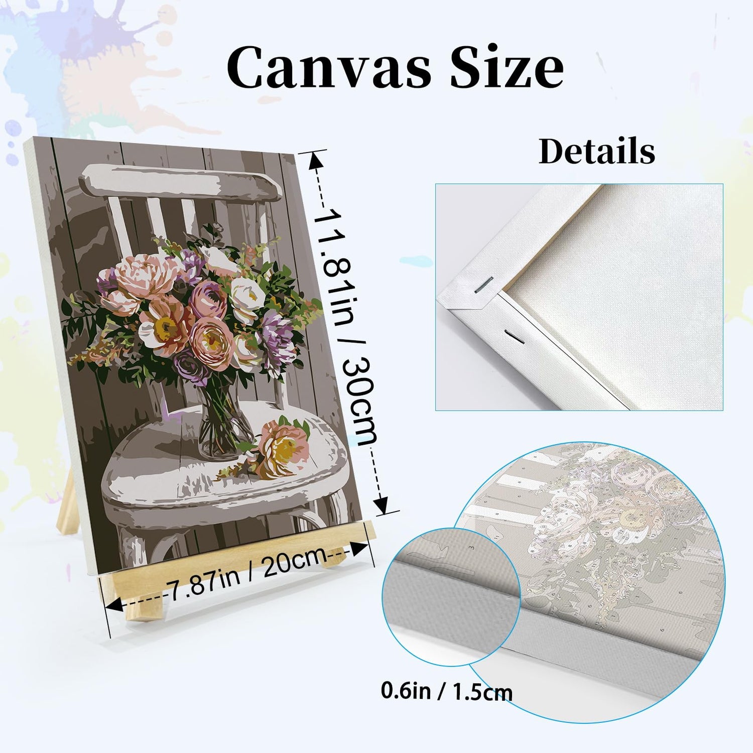 - [ Paint by Numbers Kit 4 Pack ]: This framed adult paint by number kits on canvas has a complete tool includes 4 framed canvases 8 x 12 inch, 2 adjustable wooden easels, necessary tool accessories, 4 sets of brushes, and 4 sets of acrylic paints.