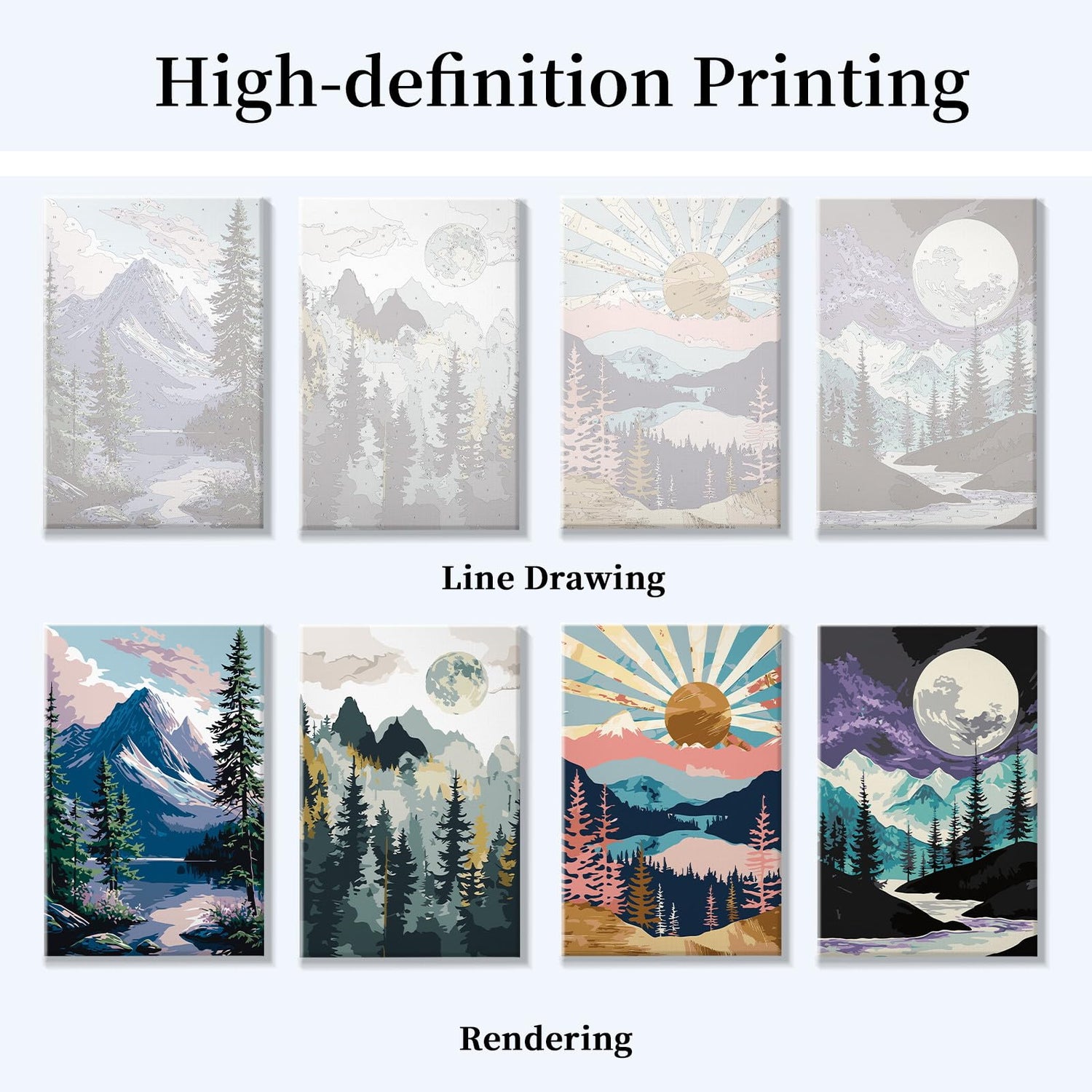 JOOZ 4 Pack Framed Paint by Numbers Kit for Adults, Mountain Sunset Paint by Number with Easel, DIY Moon Lake Adult Paint by Number Kits on Canvas, Landscape Oil Painting Kit for Home Decor 8x12 Inch