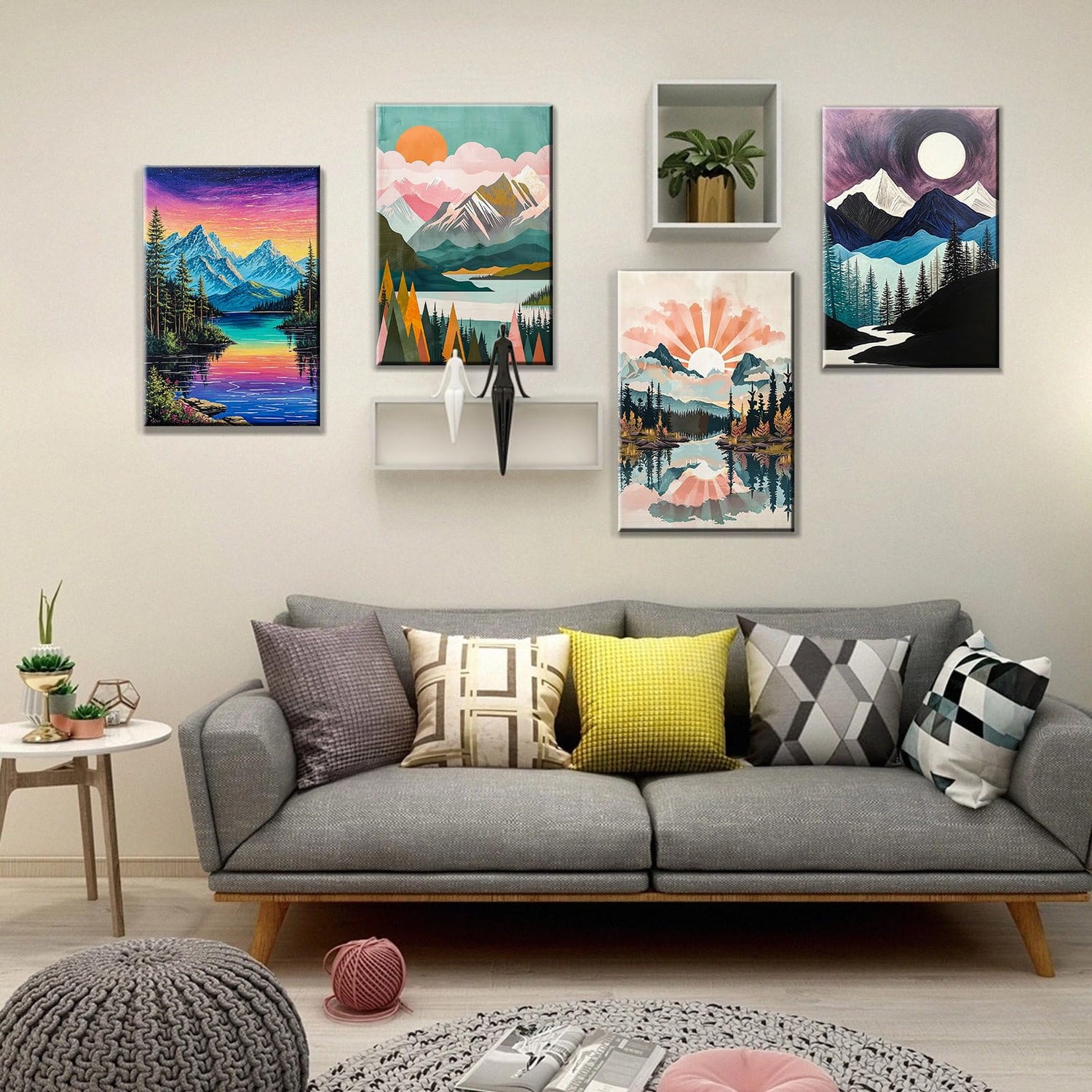 JOOZ 4 Pack Paint by Numbers Kit for Adults with Frame Mountain Landscape Paint by Number with Easel DIY Lake Adult Paint by Number Kits Sunset Easy Oil Painting Kits for Home Wall Decor 8x12 Inch
