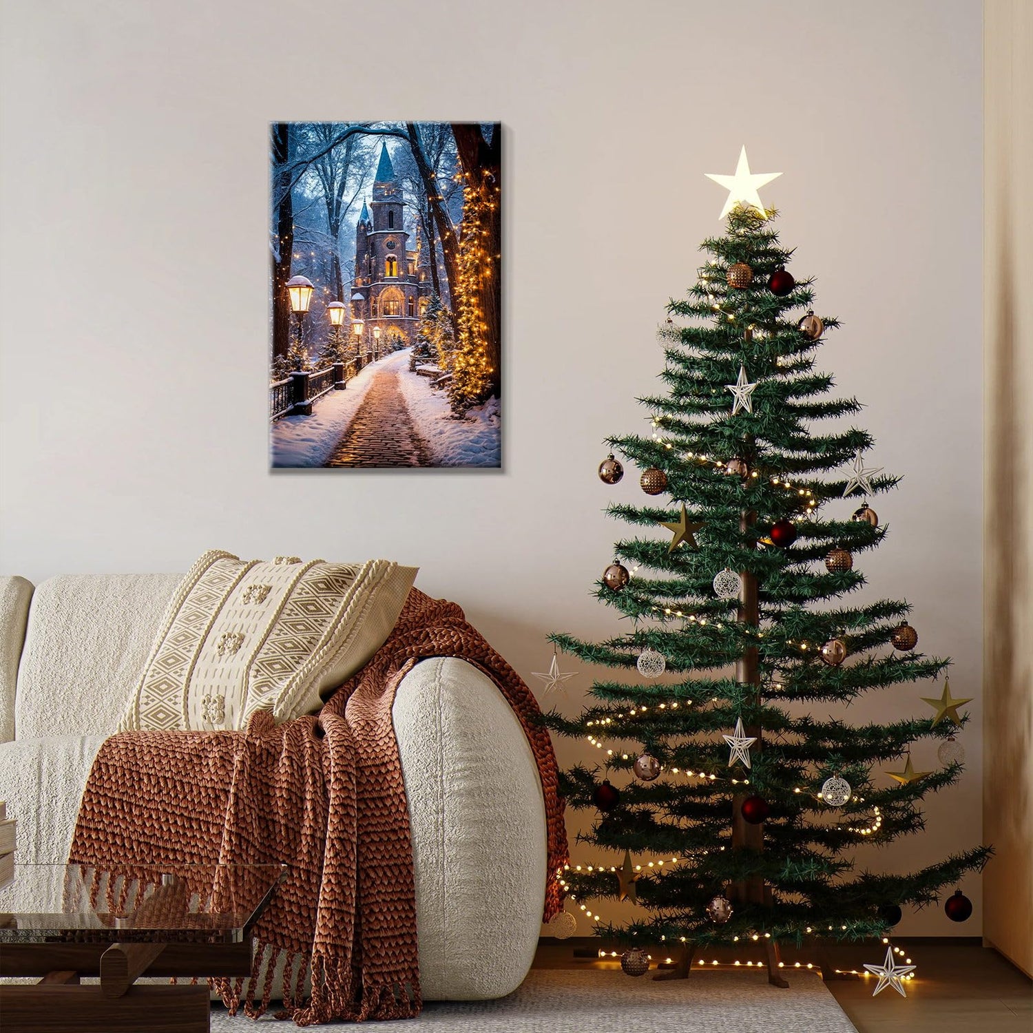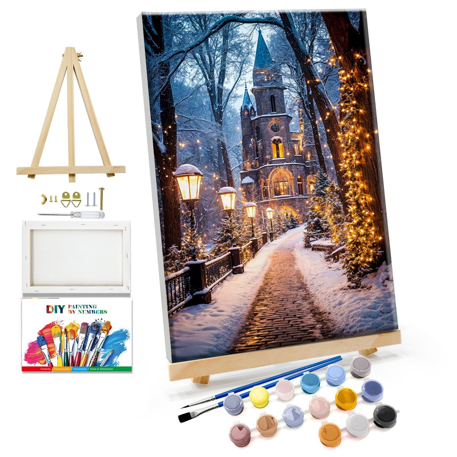 JOOZ Christmas Paint by Numbers Kit for Adults with Frame House Paint by Number with Easel Winter Scenes Paint by Number with Frame DIY Landscape Oil Painting Kits for Gift Home Wall Decor 8x12 Inch