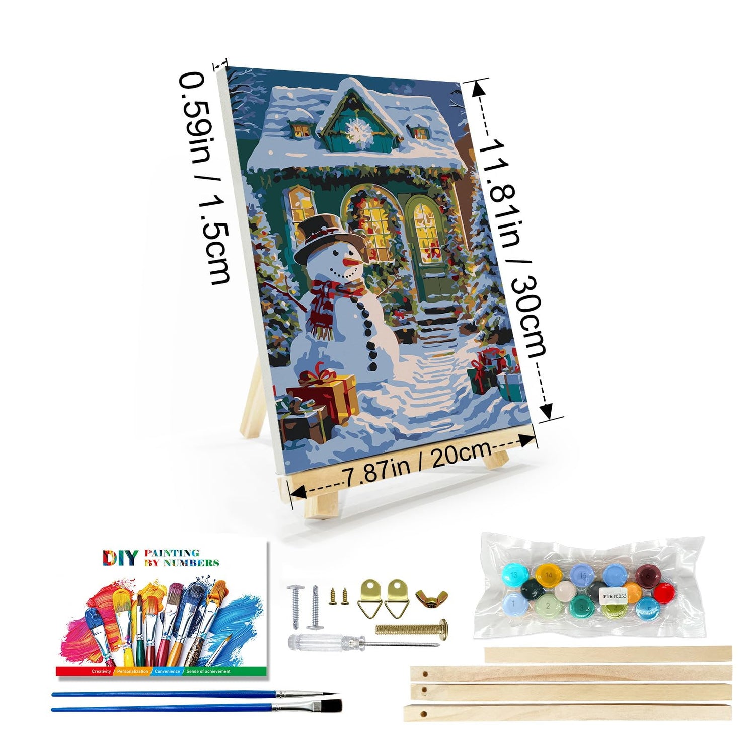 - [ Paint by Numbers Kit ]: This Christmas paint by numbers kit for adults has a complete tool includes a 8 x 12 inch framed canvas, an adjustable wooden easel, necessary tool accessories, a reference image, 2 different brushes, a set of acrylic paints, and an exquisite packaging box.