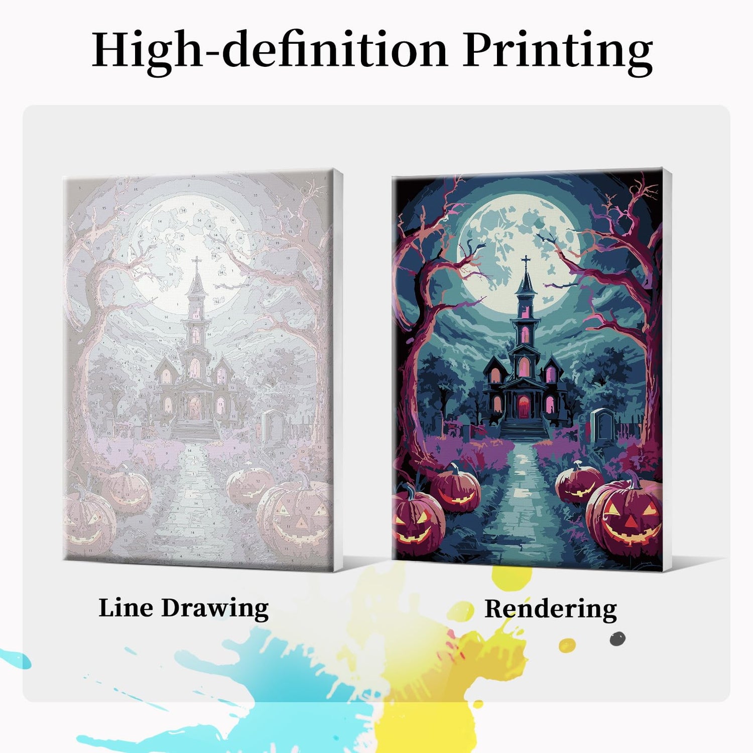 - [ Heartfelt Gift ]: Halloween is a festival filled with mystery and fantasy, and paint by number perfectly capture this atmosphere with their unique artistic style. Gifting a framed paint by number themed around Halloween not only enhances the festive spirit but also serves as a heartfelt gift for friends and family, allowing them to feel your blessings and care during the celebrations. Whether as home decor or a holiday keepsake, this artwork will bringing endless joy and beautiful memories.