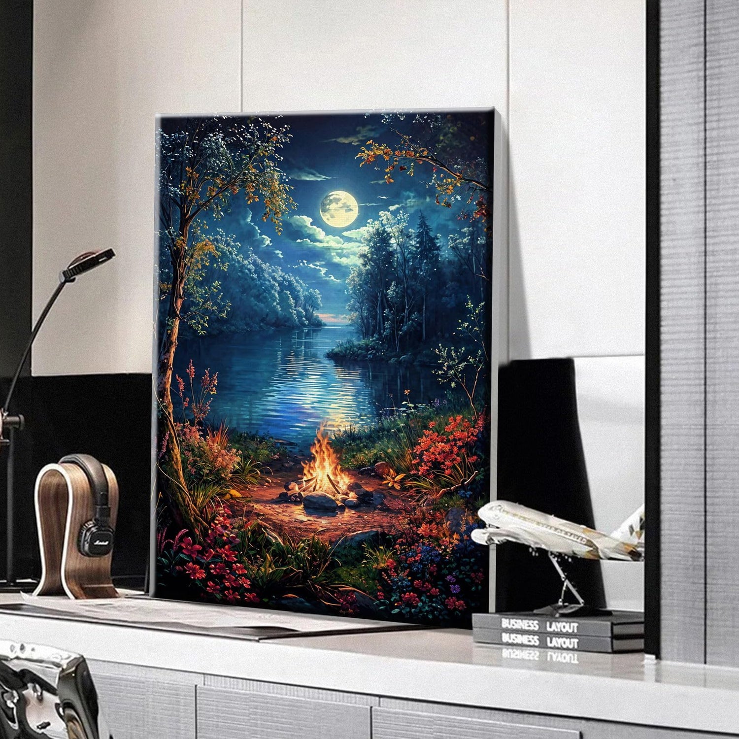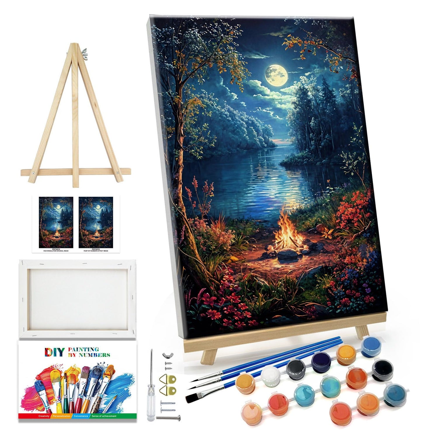 JOOZ Landscape Paint by Numbers Kit for Adults Beginner with Easel Moon Paint by Number on Canvas with Frame DIY Acrylic Painting for Ideal Gift Home Wall Decor 7.87x11.81 Inch