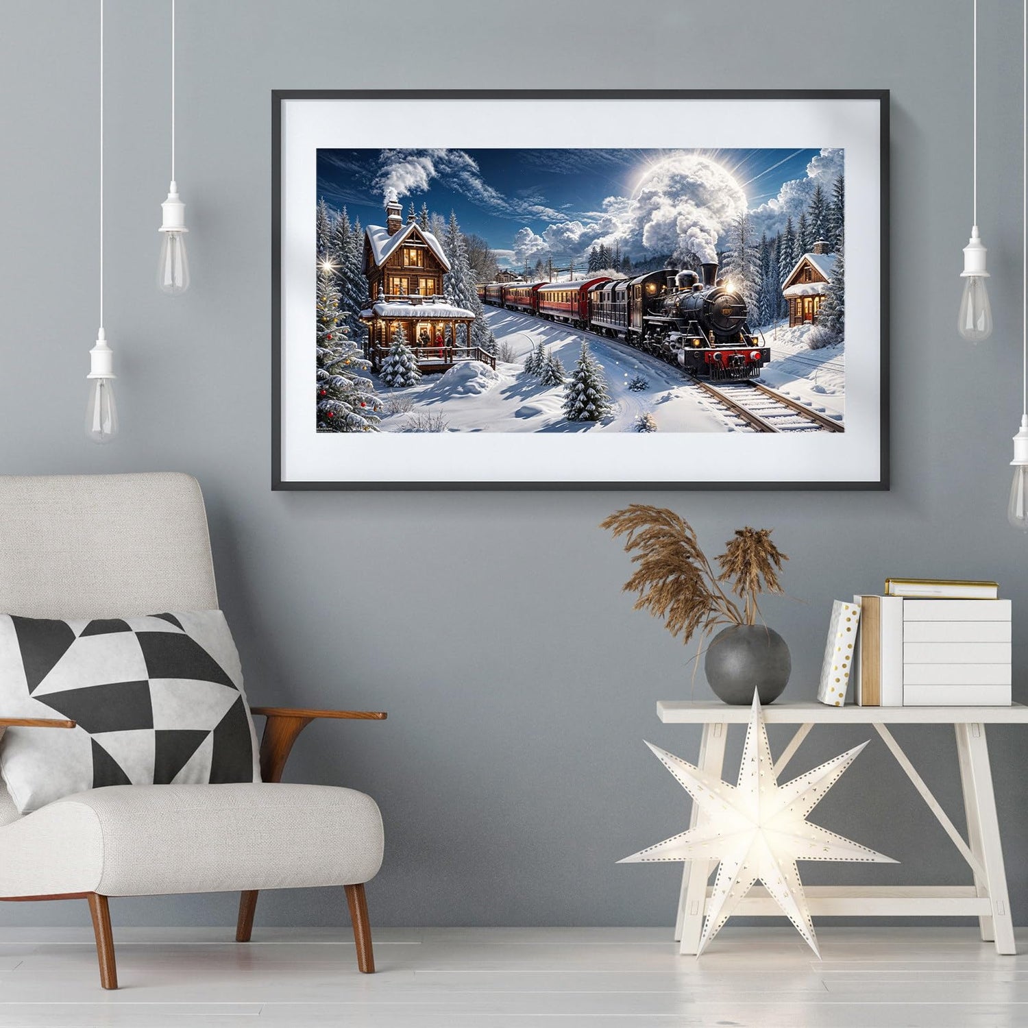 JOOZ Large Christmas Diamond Art Kits for Adults - 5D Christmas Train Diamond Painting Kits, DIY Full Drill Snow House Diamond Art Painting, Gem Painting Kit for Gift Home Wall Decor 27.5 X 15.7 Inch