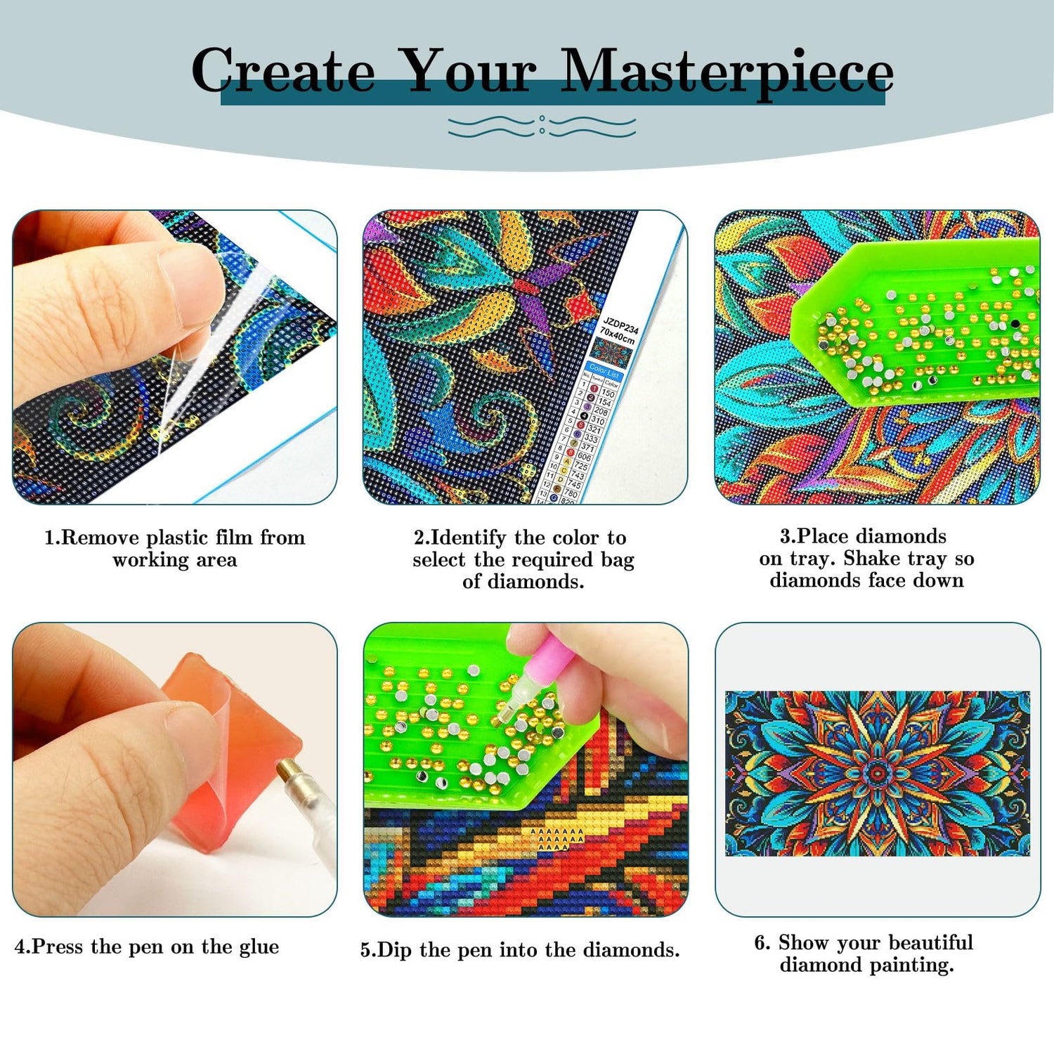 - [ LARGE DIAMOND PAINTING KITS ] --- This diamond painting kit includes a range of tools to help you easily start diamond art dotting. It includes a high-definition canvas measuring 27.5*15.7 inch with clear and intricate patterns. The kit also provides two comfortable diamond pens, two trays for convenient diamond storage, and two pieces of clay for securing the diamonds in place. The kit comes with a sufficient quantity of diamonds, so you don't have to worry about running out of materials.