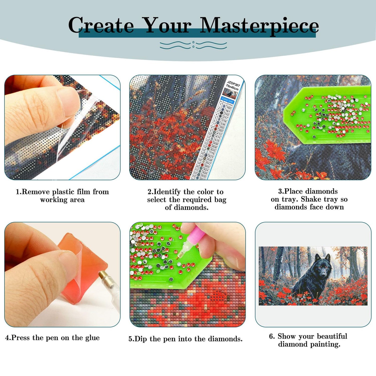 - [ LARGE DIAMOND PAINTING KITS ] --- This diamond painting kit includes a range of tools to help you easily start diamond art dotting. It includes a high-definition canvas measuring 27.5*15.7 inch with clear and intricate patterns. The kit also provides two comfortable diamond pens, two trays for convenient diamond storage, and two pieces of clay for securing the diamonds in place. The kit comes with a sufficient quantity of diamonds, so you don't have to worry about running out of materials.