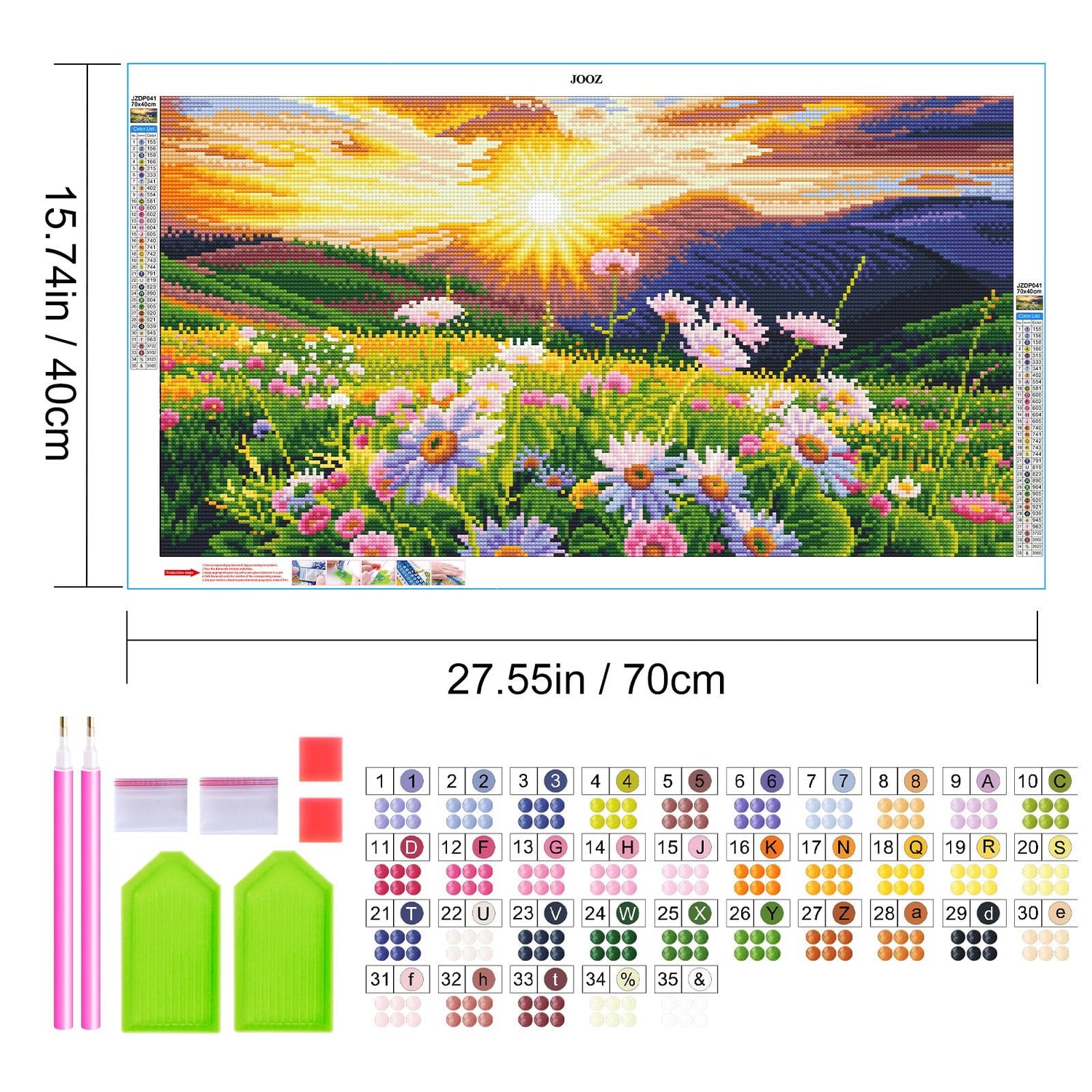 JOOZ Large Landscape Diamond Art Kits for Adults - 5D Sunset Diamond Painting Kits for Adults, DIY Full Drill Mountain Flowers Diamond Art Painting Kits, Gem Art Kits for Wall Decor 27.5x15.7 Inch