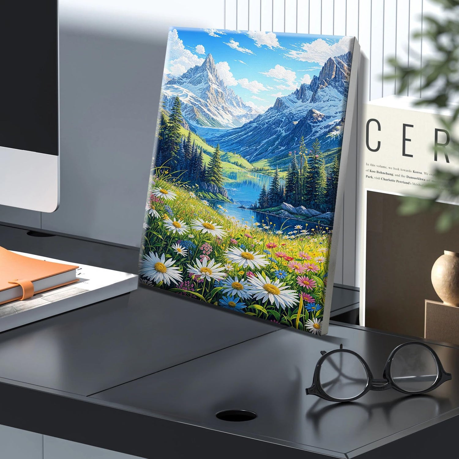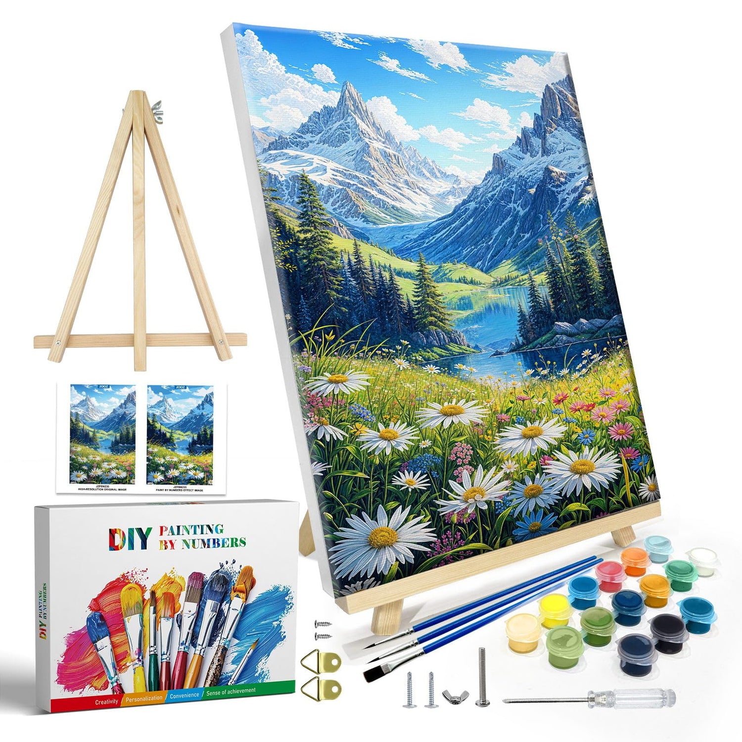 JOOZ Mountain Paint by Numbers Kit for Adults with Frame, Landscape Paint by Number with Easel, DIY Landscape Flower Adult Paint by Number Kits Framed Canvas for Home Wall Decor 8 x 12 Inch