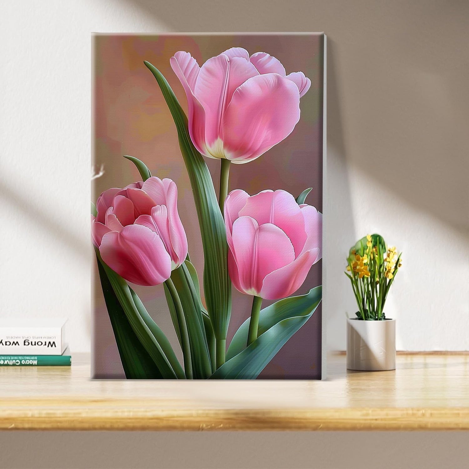 JOOZ Paint by Numbers Kit for Adults Flowers Paint by Numbers Kit with Frame DIY Tulip Paint by Number with Easel Floral Adult Paint by Number Kits Canvas for Gift Home Wall Decor 7.87x11.81 Inch