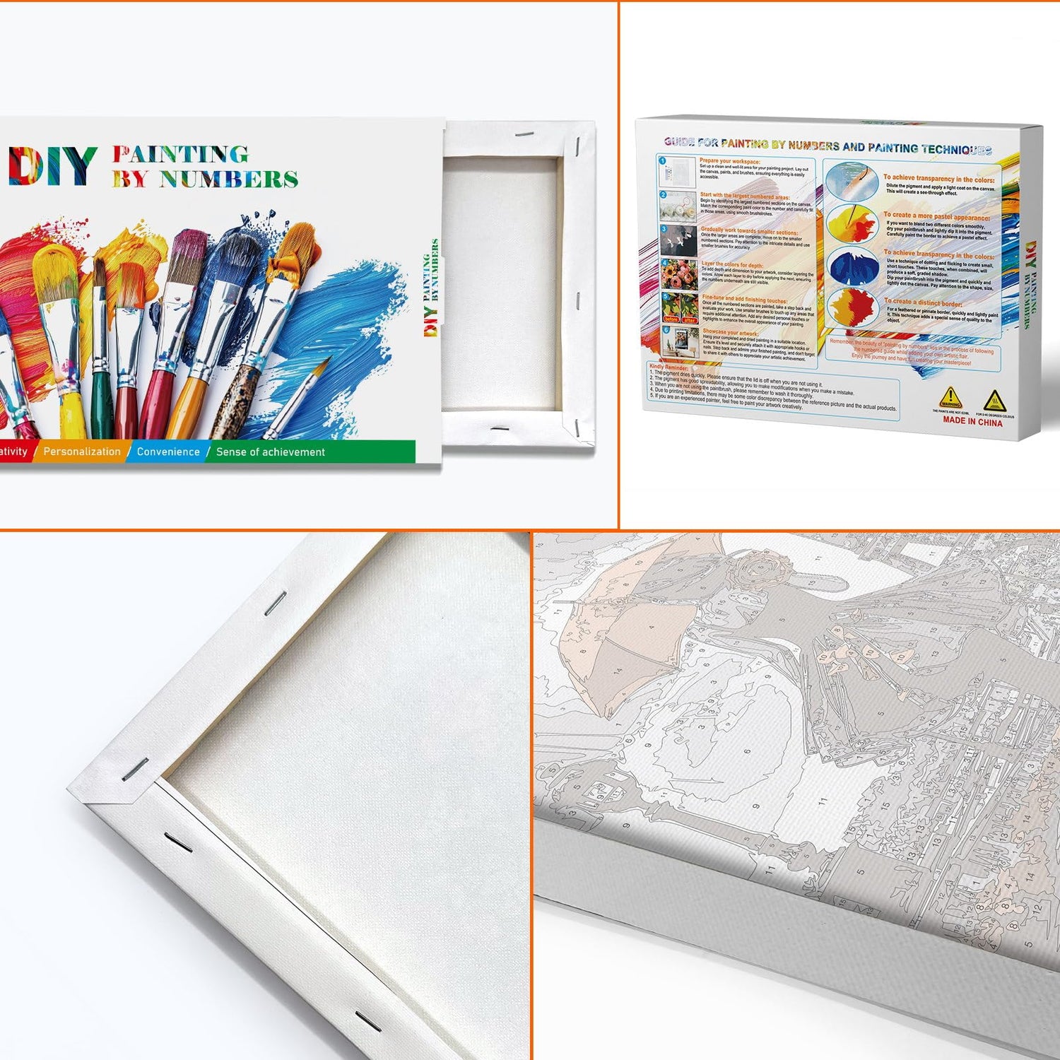 - [ Paint by Numbers Kit ]: This paint by numbers kit for adults has a complete tool includes a high-quality 8 x 12 inch framed cotton canvas, an adjustable wooden easel, necessary tool accessories, a fine reference picture, 3 different paintbrushes, a set of acrylic paints, and an exquisite packaging box.