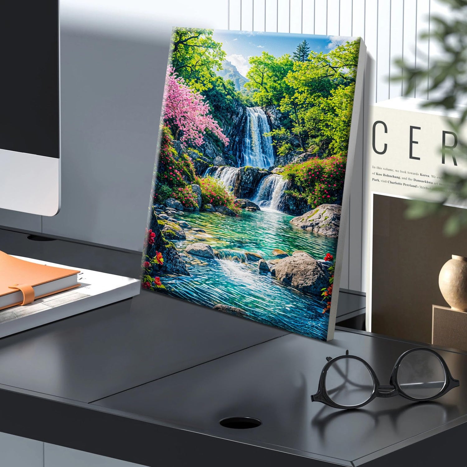 JOOZ Paint by Numbers Kit for Adults with Frame, Landscape Paint by Number with Easel, Mountain Waterfall Paint by Number Canvas, DIY Landscape Oil Painting Kit for Home Wall Decor 8x12 Inch
