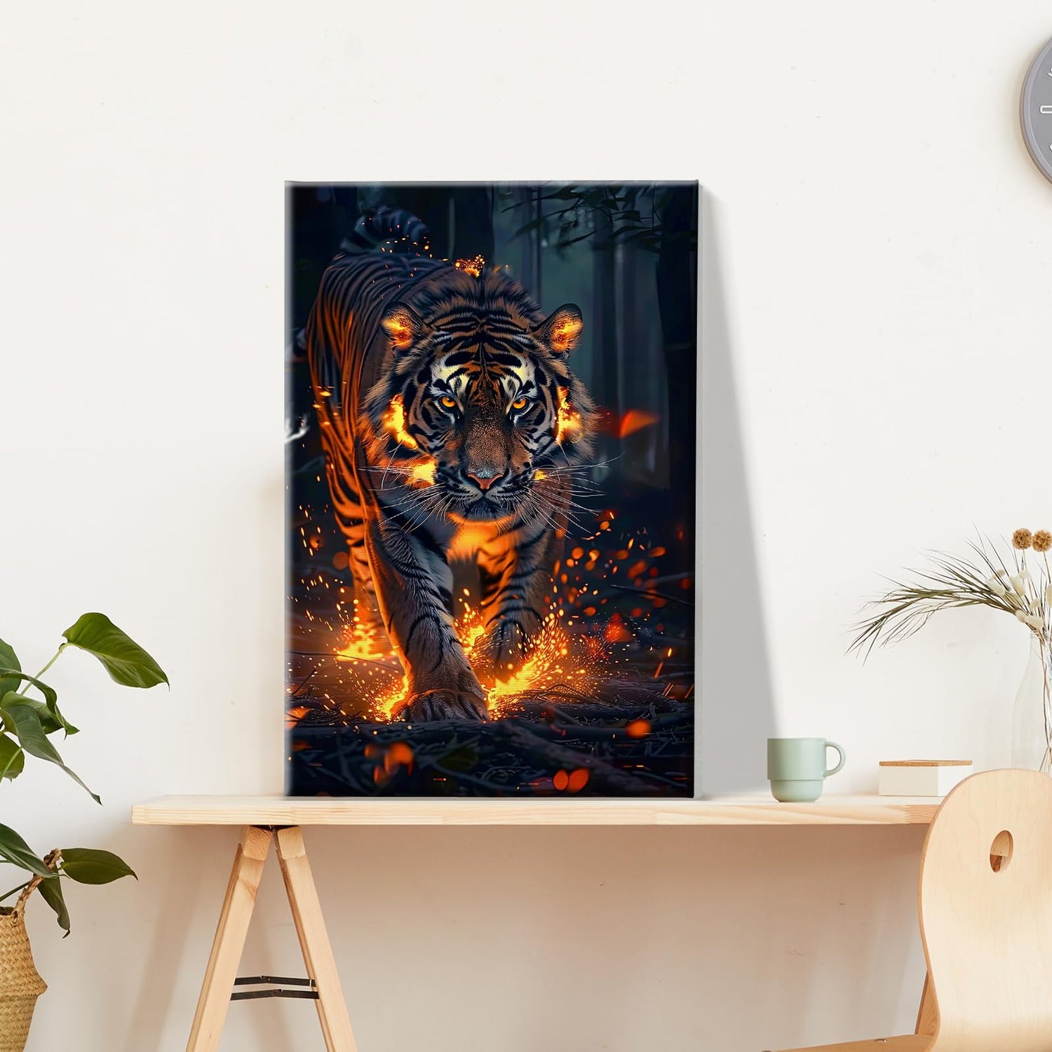 JOOZ Paint by Numbers Kit for Adults with Frame Tiger Paint by Number with Easel Animal Adult Paint by Number Kits on Canvas DIY Paint by Number for Adults for Gift Home Wall Decor 7.87x11.81 Inch
