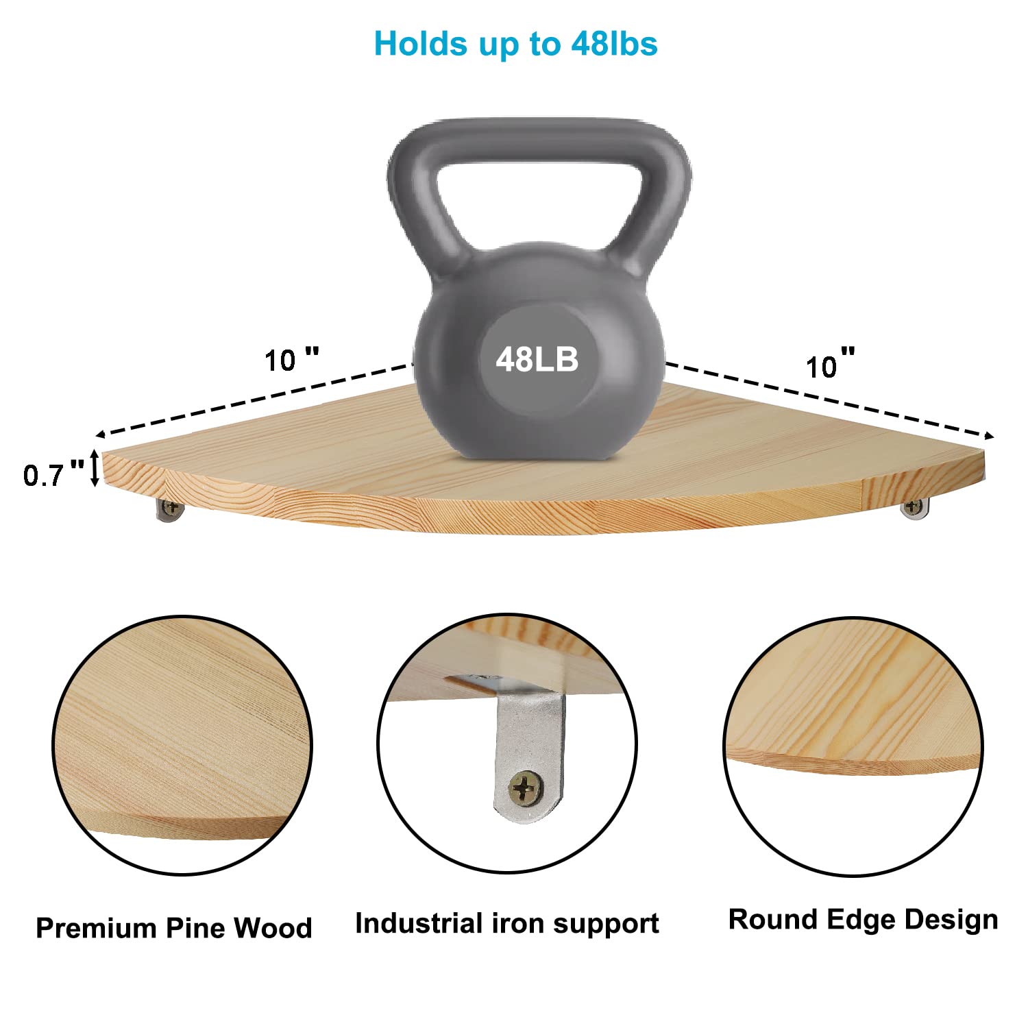 - REAL SOLID WOOD: These corner wall shelves made of high-end solid wood with a minimal environmental footprint. Natural wood can prevent damage and scratches, green and upscale. Designed for long lasting durability purpose with an average lifespan over 20 years.