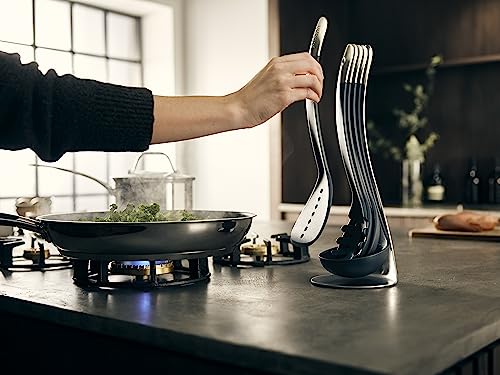 Joseph Joseph Nest 5 Compact Stacking Utensils kitchen tool set with magnetic storage stand, organization, dishwasher safe - Black/Stainless Steel