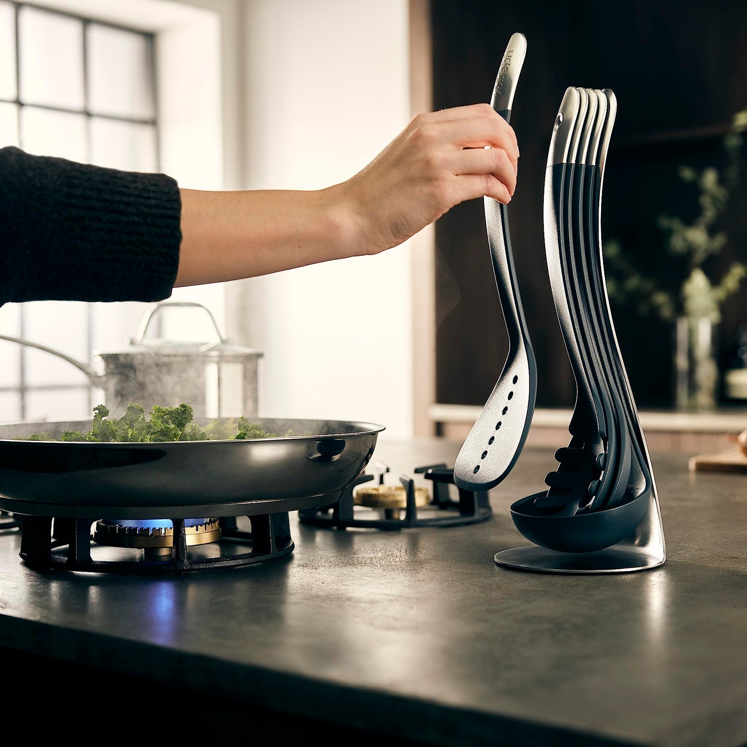 - Set includes: Slotted Turner, Spaghetti Server, Slotted Spoon, Solid Spoon, and Ladle