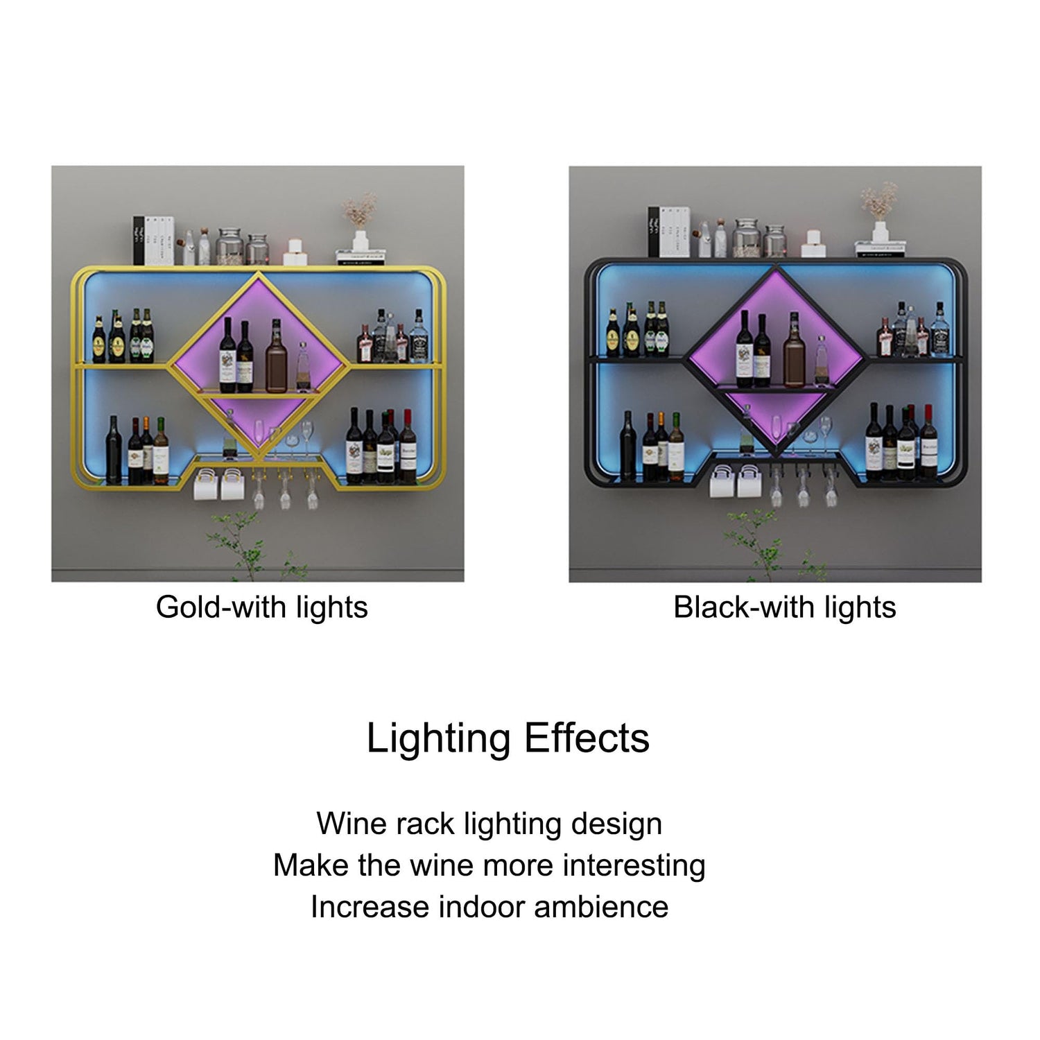 - 【Ambient Light Design】:This stylish wall wine rack package includ the two colors light strip, LED lights are strategically placed to illuminate the wine bottles, creating a visually stunning display. showcase your wine collection elegantly,it can increase indoor atmosphere,enjoy your leisure time.