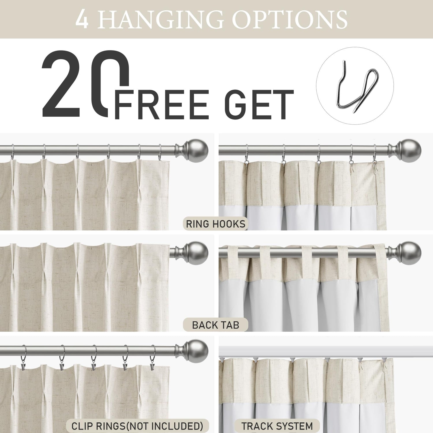 - Four Hanging Options: Can be used to adjust the height depending on the suspension method. (1) Use the loop hooks (20 hooks included in the package). (2) Use the Back Tab create an elegant and casual pleated effect. (3)Use clip rings. (4) Use the rail system (clips and rings not included).