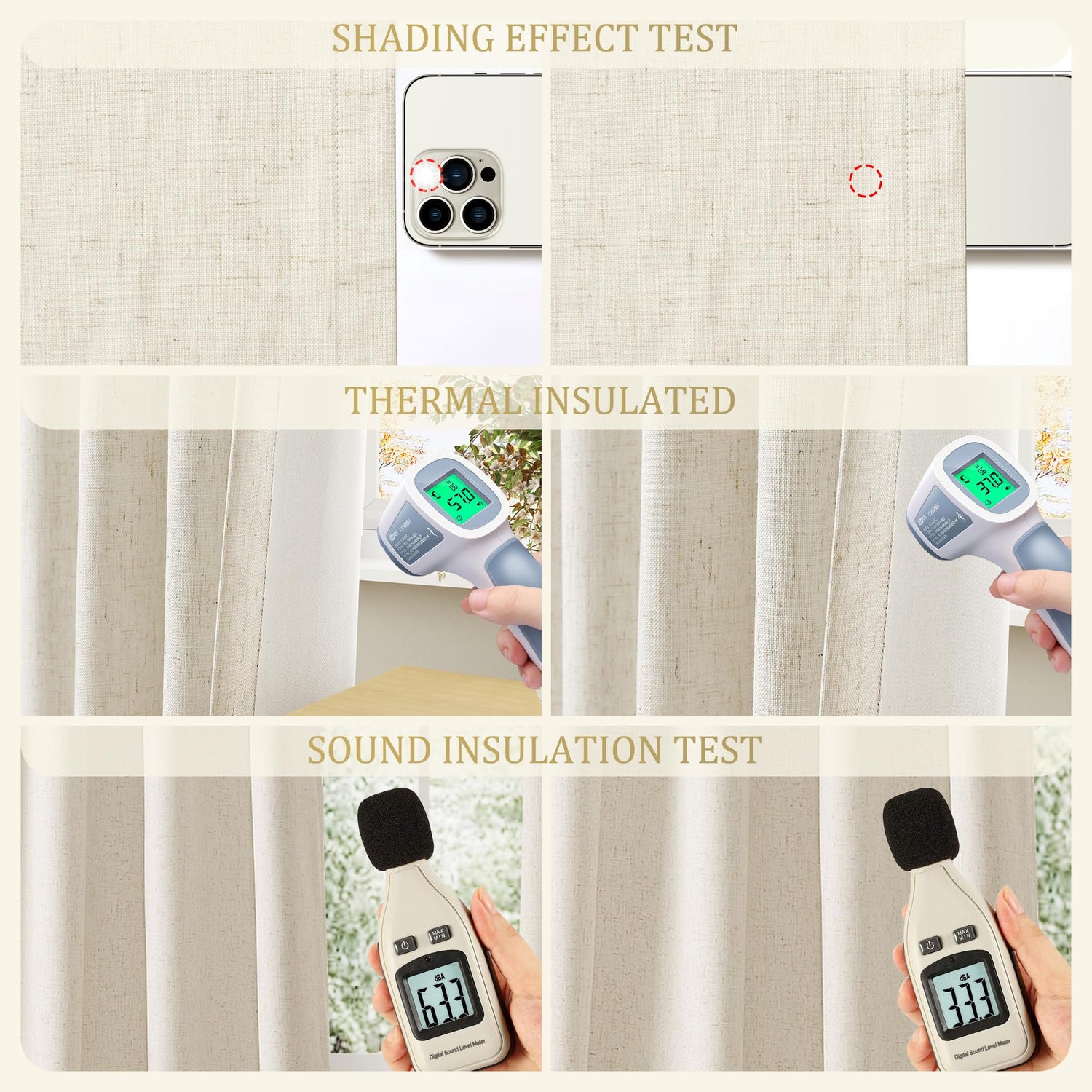 - 100% Blackout Curtains: Our blackout curtains feature a dense fabric construction with excellent thermal insulation that helps keep your room warmer in winter and cooler in summer, and sewn with a blackout coated lining, these blackout linen curtains provide complete darkness, thus give you a good sleep.