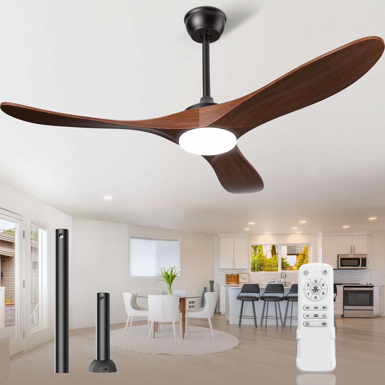 JOYEYE Ceiling Fans with Lights and Remote, 3 Solid Wood Blades, Outdoor Wooden Ceiling Fan with 2 Downrods for Patios, 52 Inch Modern Ceiling Fan with Noiseless Reversible DC Motor