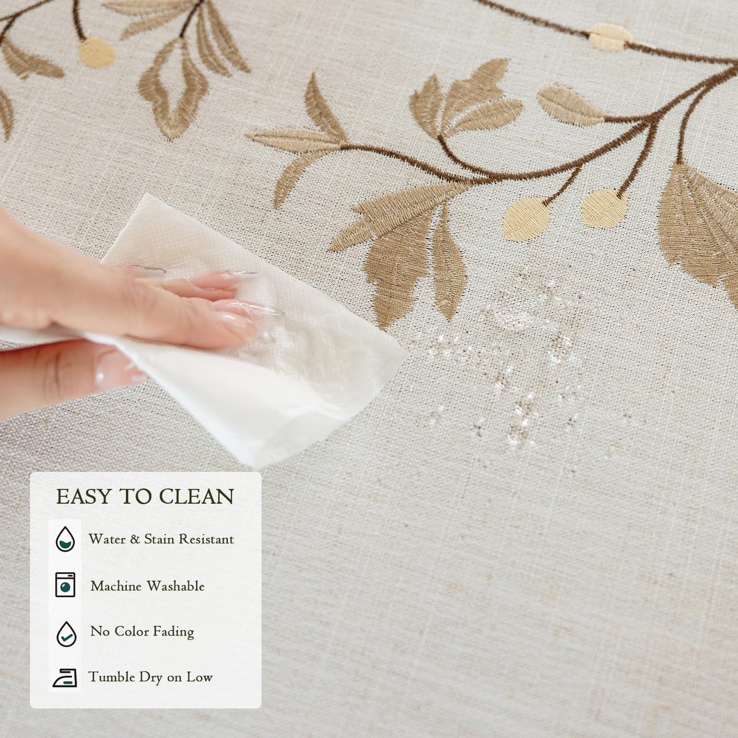 - 【VERSATILE TABLE PROTECTOR】: Match with the additional waterproof coating process. Make the tablecloth splash-proof, waterproof and stain-proof. While better protecting your dining table, it also has a good dropping effect. With delicate embroidery patterns and Exquisite Workmanship gives you a decent elegant feeling.