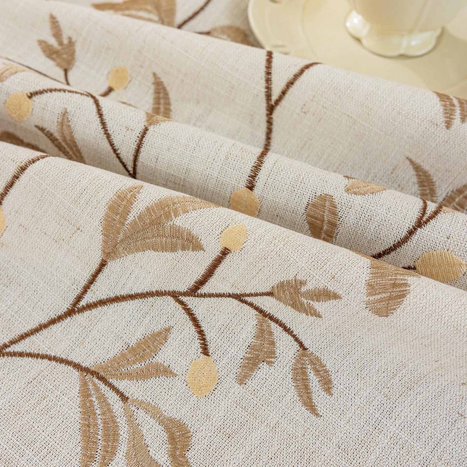 Joyfol Day Rustic Waterproof Linen Tablecloth, Heavy Weight Beige Embroidery Table Cloths for Rectangle Tables, Burlap Farmhouse Table Covers (Coffee Leaves, 55''x 70'')