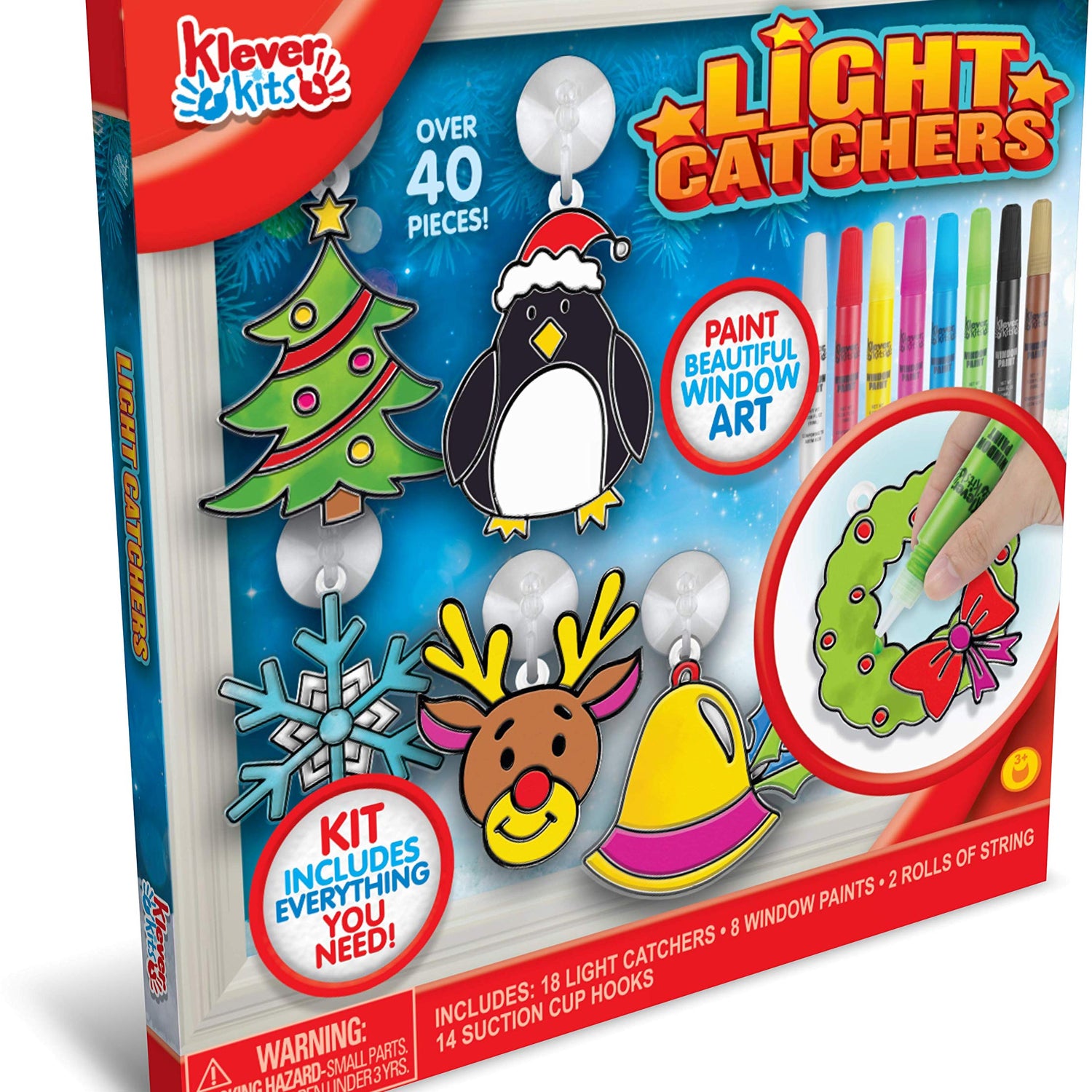 - COMPREHENSIVE SET. Our DIY Christmas Window Craft Suncatchers Kit includes 8 window paints, suction cups, transite cord and 18 suncatchers