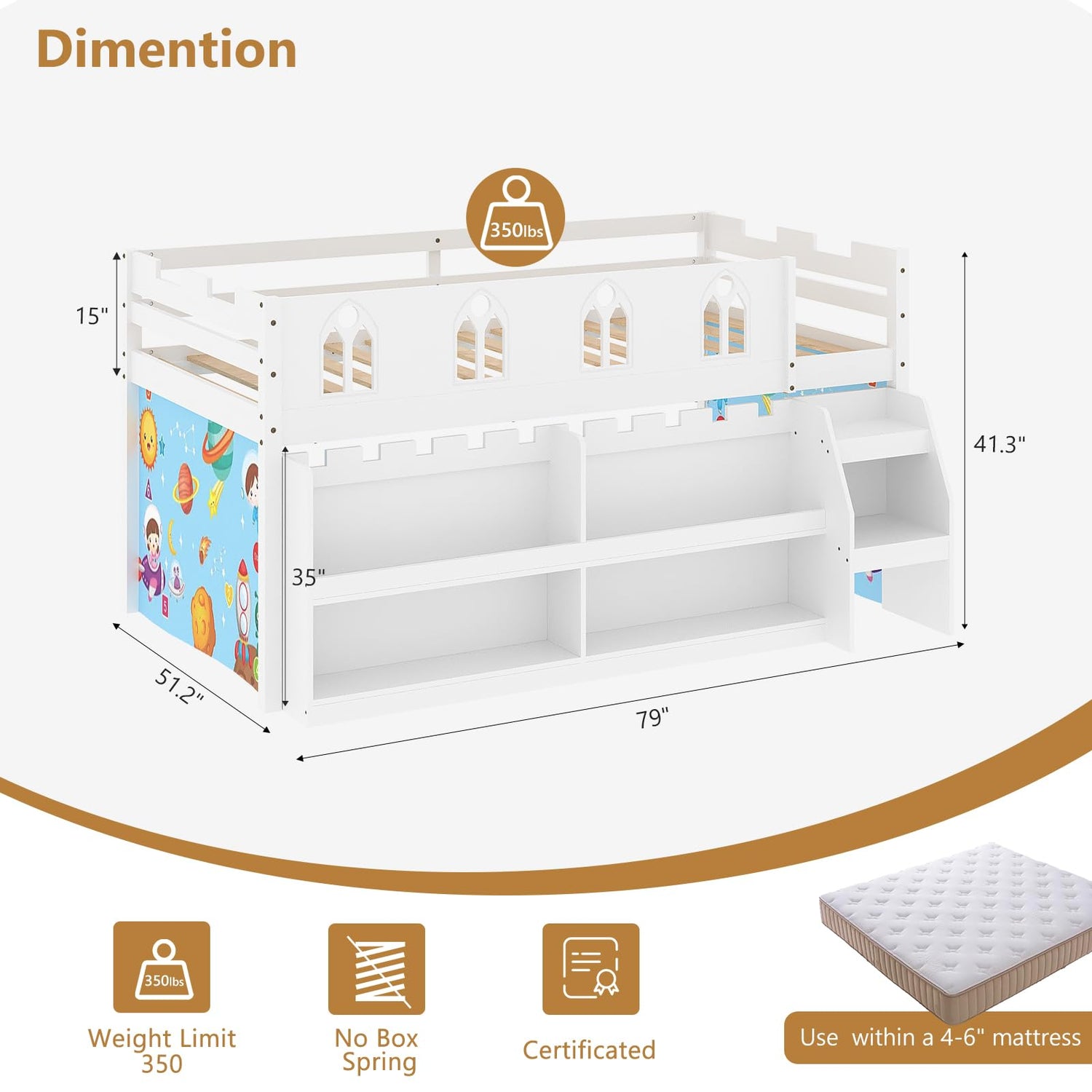 - Safe & Fun Kids Loft Bed: This loft bed has 15 inch tall guardrails for worry-free sleep, no fall risks. Its castle design with viewing windows sparks imagination, turning bedtime into a fairytale. It also has a widened 2-step ladder (easy/safe climbing) and 2 detachable curtains (private hideaway), ensuring safety for kids & peace of mind for parents.