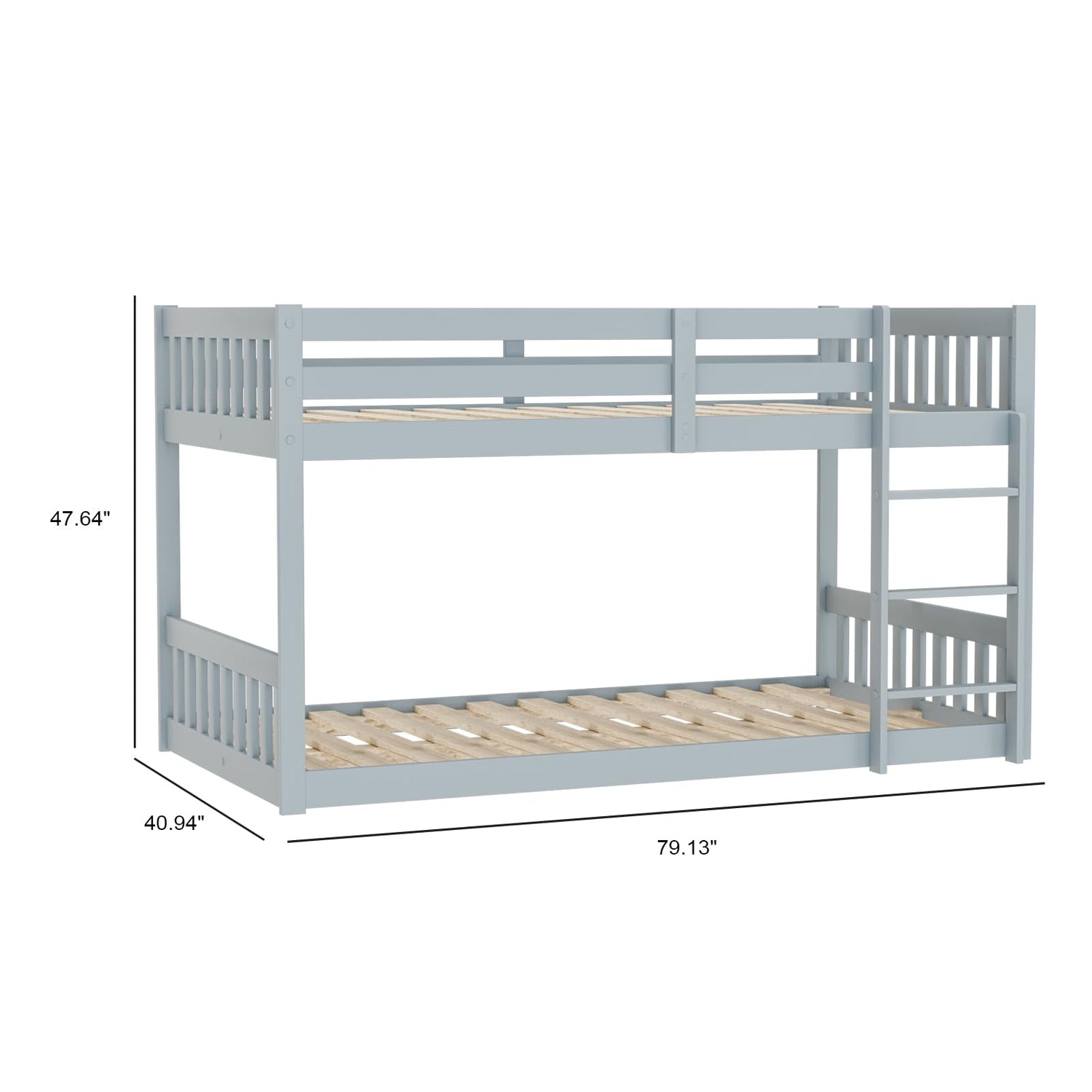 Stylish JOYMOR Twin Over Twin Solid Wood Bunk Bed Frame with Safety Guard Rails and Ladder in Grey