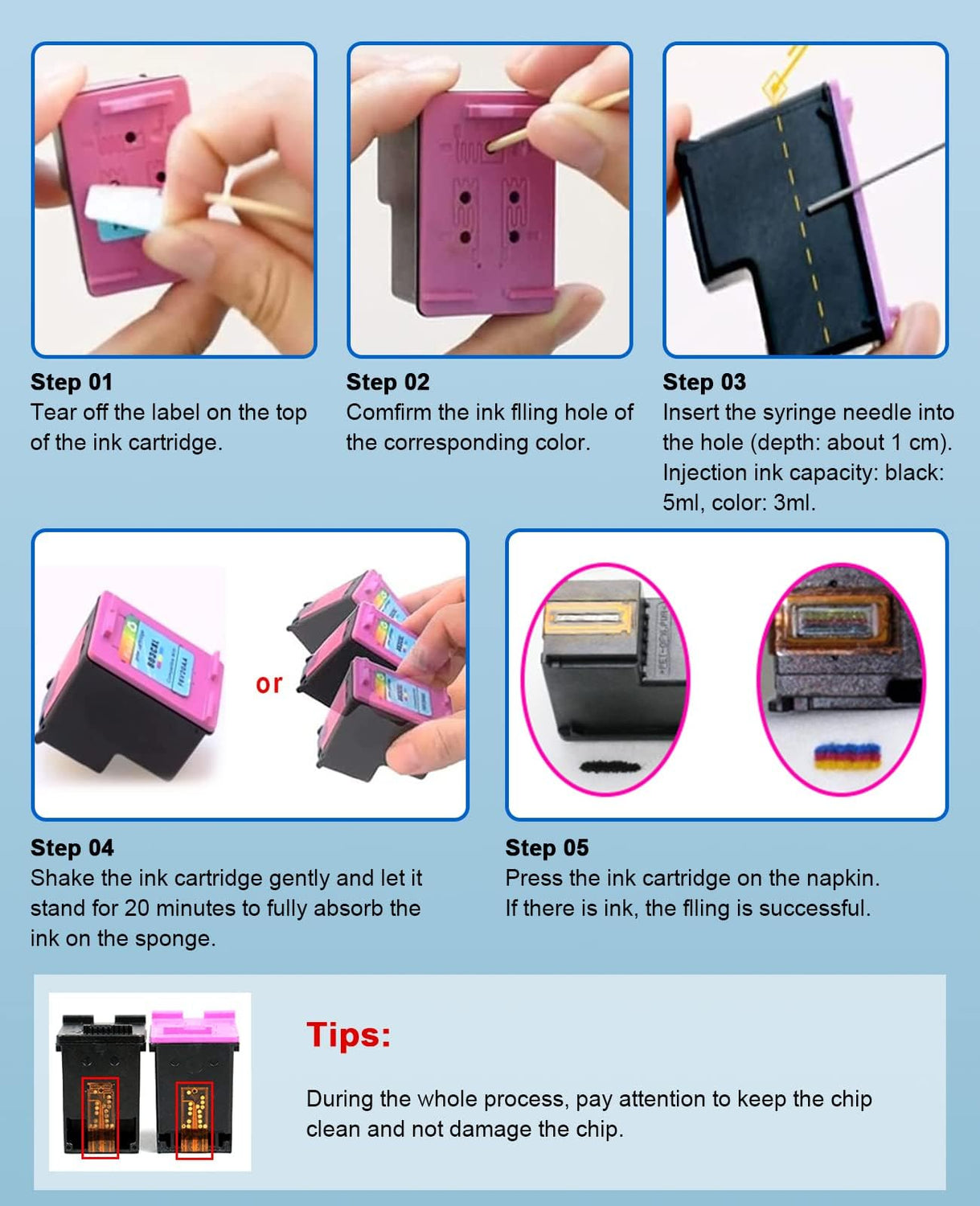 - Easy to Use: JoyPrinting compatible HP Ink Refill Kit is designed to be user-friendly and straightforward, we offer detailed instructions and all the necessary tools, such as syringes or bottles with specialized nozzles, to facilitate a hassle-free refill processes