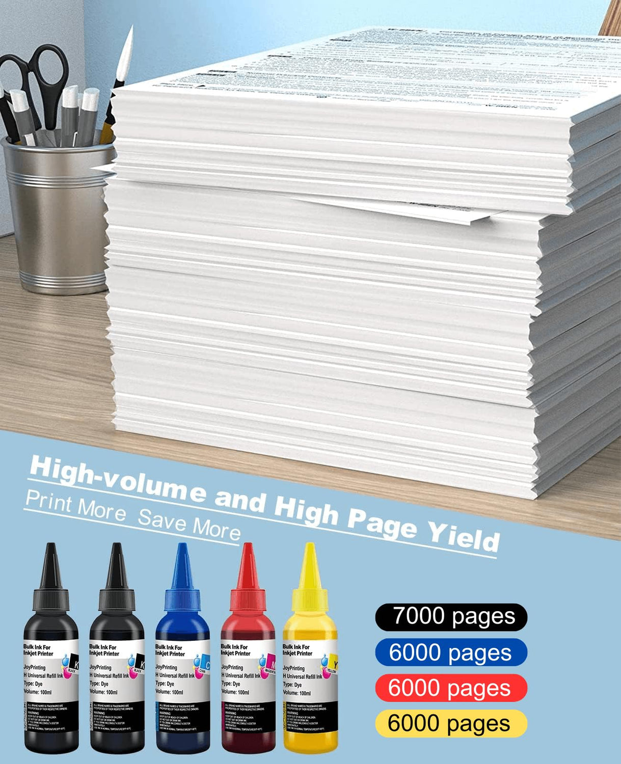 - High Yield Performance: Each bottle offers a high page yield, reducing the need for frequent refills and providing exceptional value for money. Up to 7,000 pages for black ink and 6,000 pages for color ink at 5% coverage (Letter/A4) per cartridge.