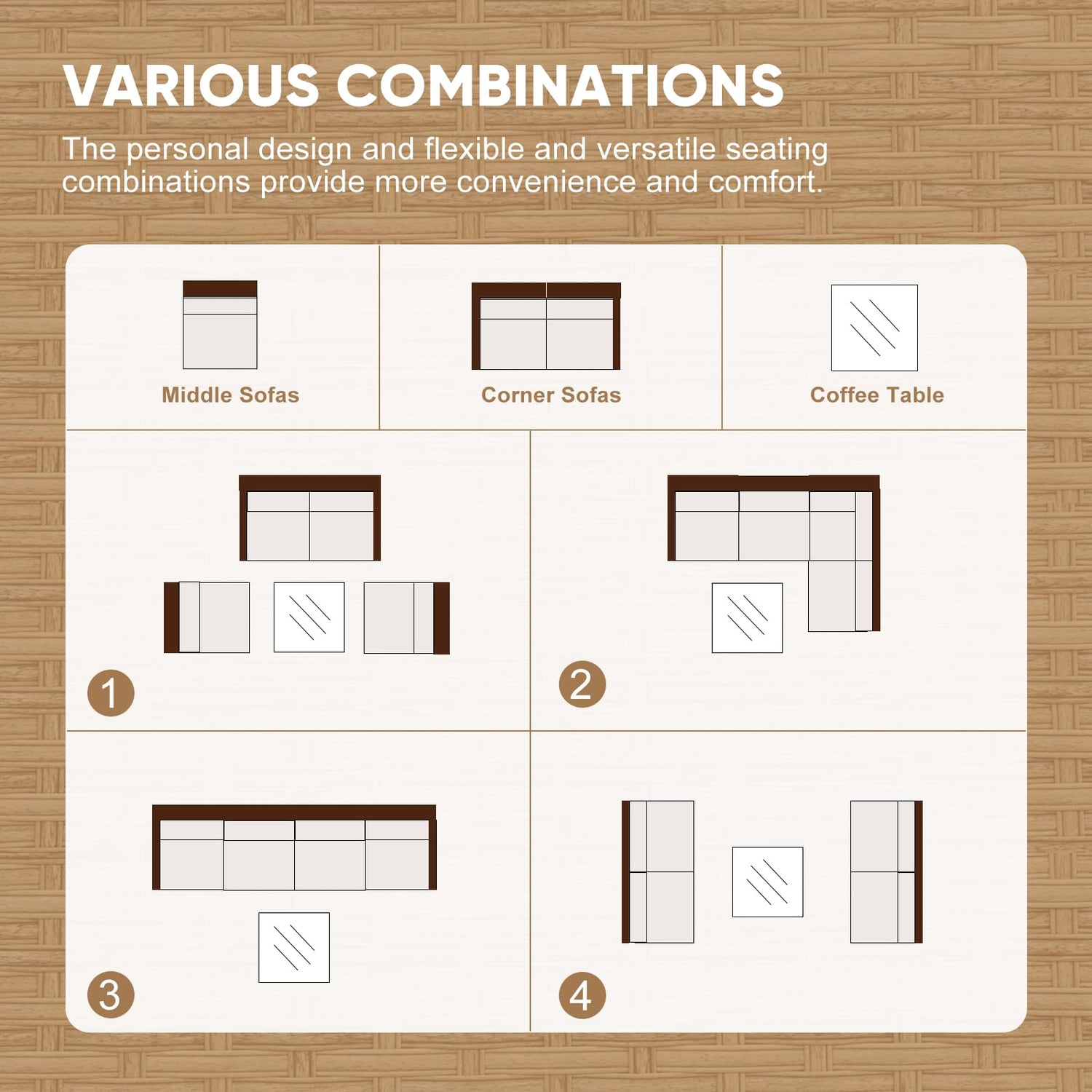 - 【Easy Assembly,Multi-Scenario】Each piece of the patio sectional sofa set is designed for easy assembly; All necessary hardware and detailed instructions are included; The set Elevates your backyard, lawn, garden, poolside, or leisure area with our sleek and stylish furniture set, perfect for any space.