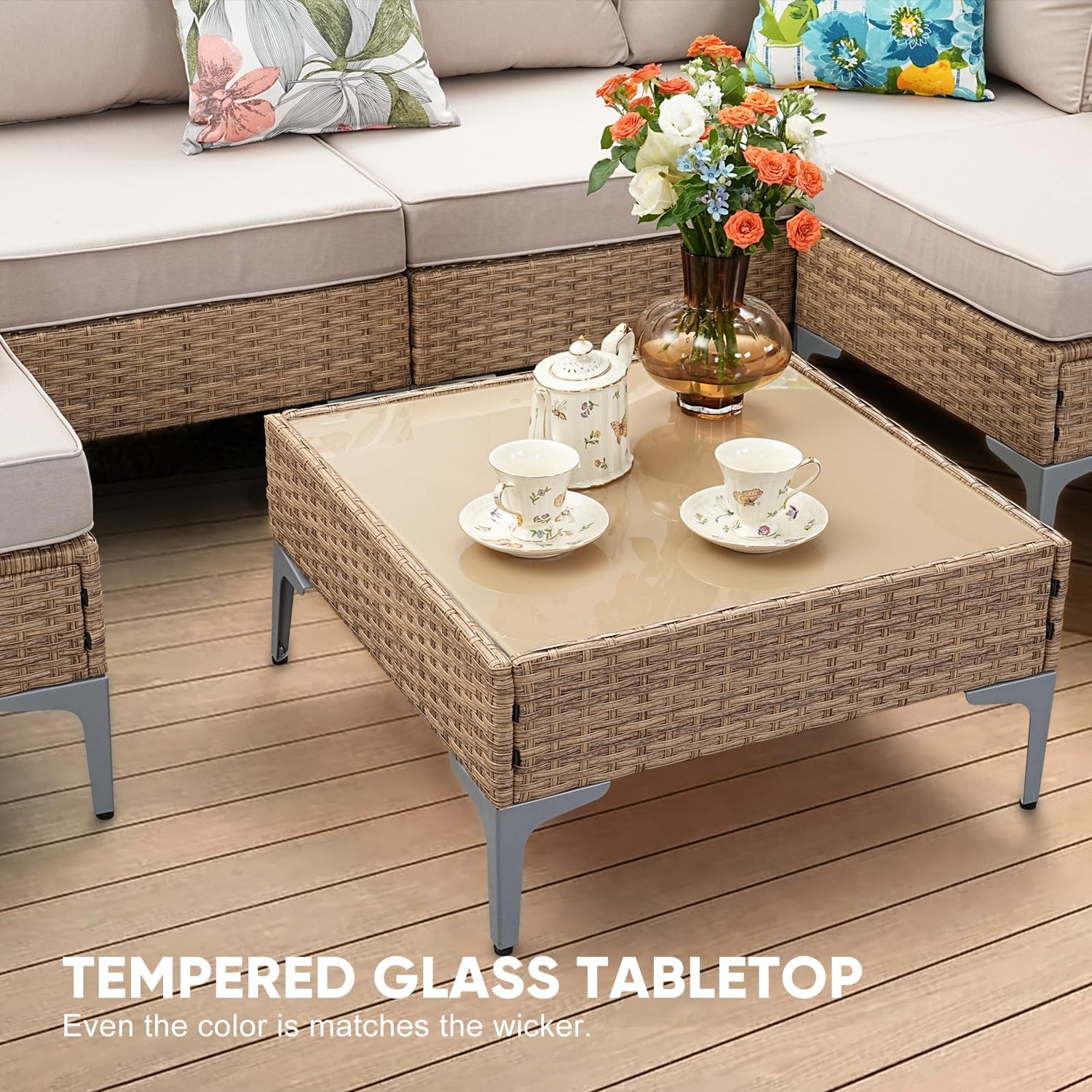 JOYURE 5 Piece Wicker Patio Furniture Set,Outdoor Conversation Sectional Sofa w/Coffee Table,All-Weather Outdoor Sofa with Thick and Anti-Slip Cushions for Deck,Poolside,Garden,Beige