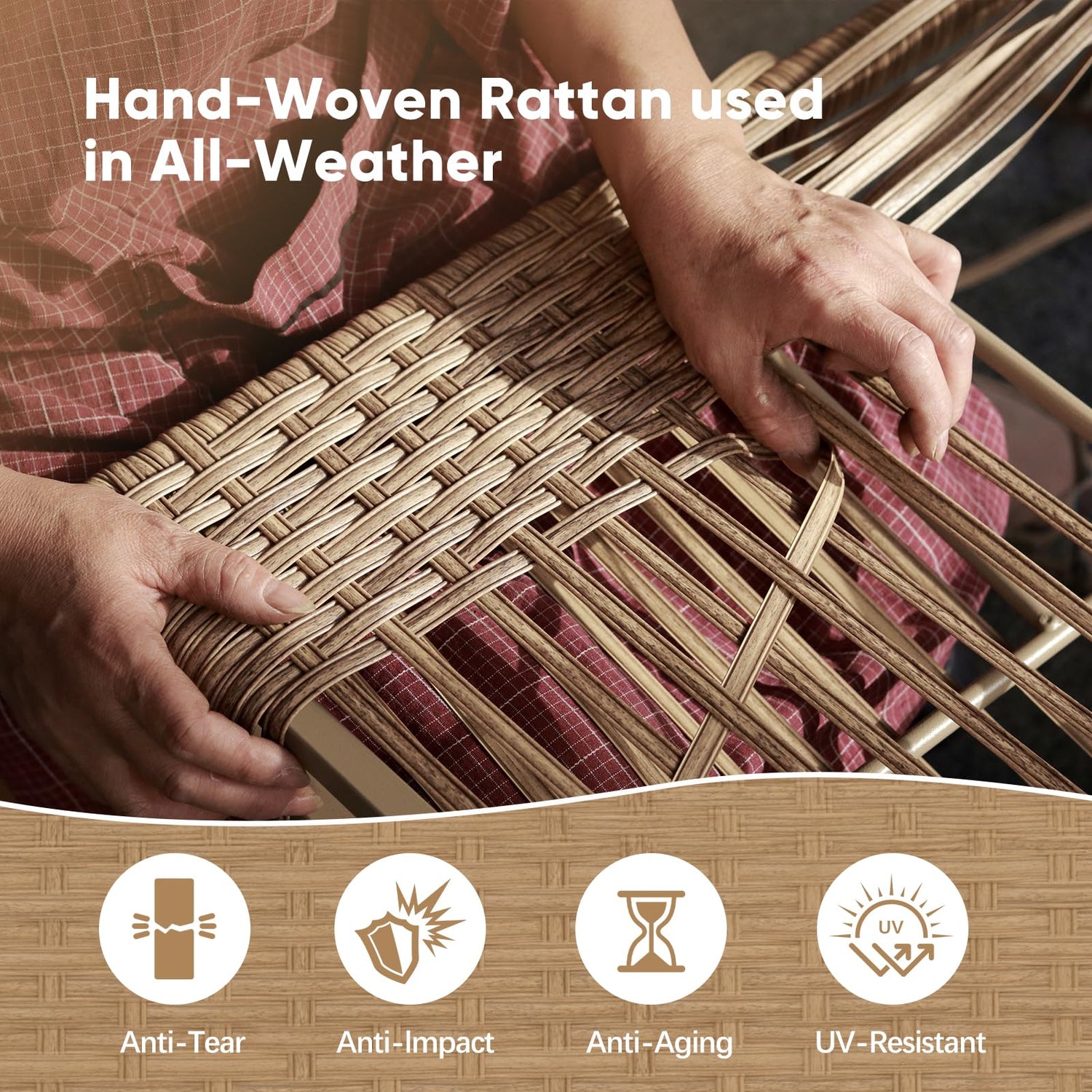 - 【ALL-weather&Durable Wicker】The patio furniture set is crafted with durable PE rattan that are strong enough to withstand all weather variations and won't fade, split or incur other wear,providing sturdiness and durability.