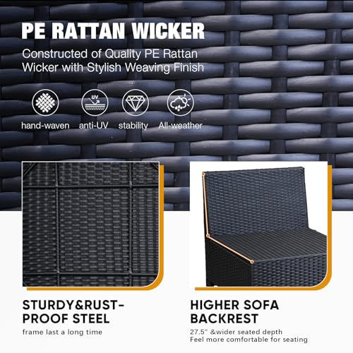 - 【Durable material】: JOYURE rattan patio furniture set is made of brown PE rattan which is hand-woven and strong steel frame, It is durable enough to withstand rain and wind for long time using. the powder coated steel frame inside the sofas makes sofa sturdy.