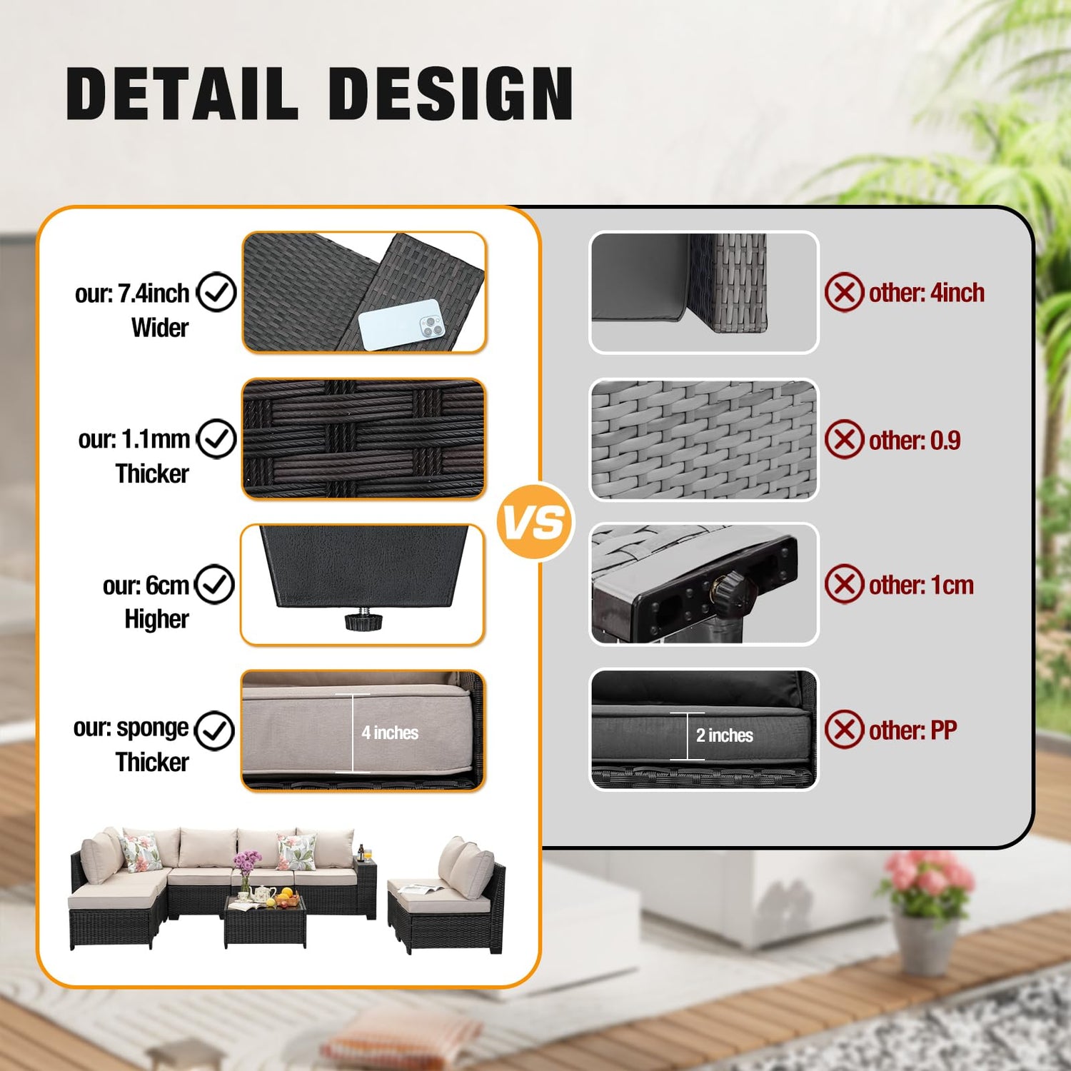 - 【Durable material】: JOYURE rattan patio furniture set is made of brown PE rattan which is hand-woven and strong steel frame, It is durable enough to withstand rain and wind for long time using. the powder coated steel frame inside the sofas makes sofa sturdy.