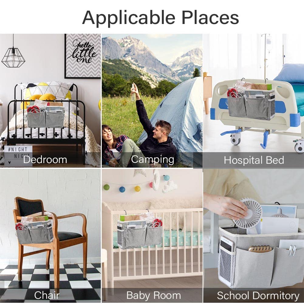 - Where to use it: Meeting the request for multi storage. Bedside caddy is a perfect storage organizer for bedside, especially suitable for home bunk beds, cribs, college dorm beds, hospital beds, also can be placed on the side of sofas, office partitions, car seat back, etc.