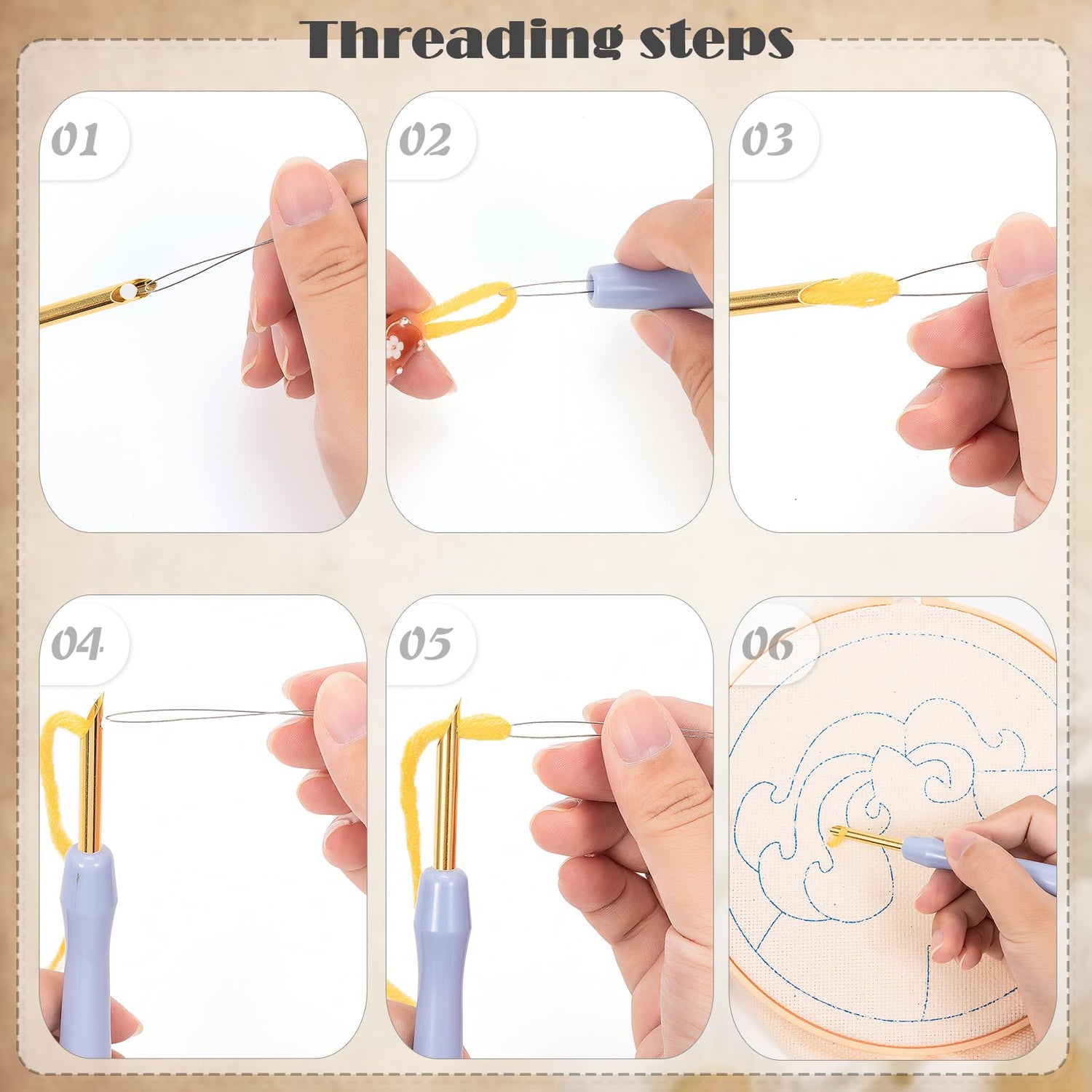 - Easy to Use: After threading the embroidery needle with yarn using the threader, keep the needle hole facing downward. The recommended stitch spacing is 0.6cm, and the ideal depth for each stitch is 1.5cm. Beginners can finish the easy cross stitch rug hooking beginners kit in about 1 hour