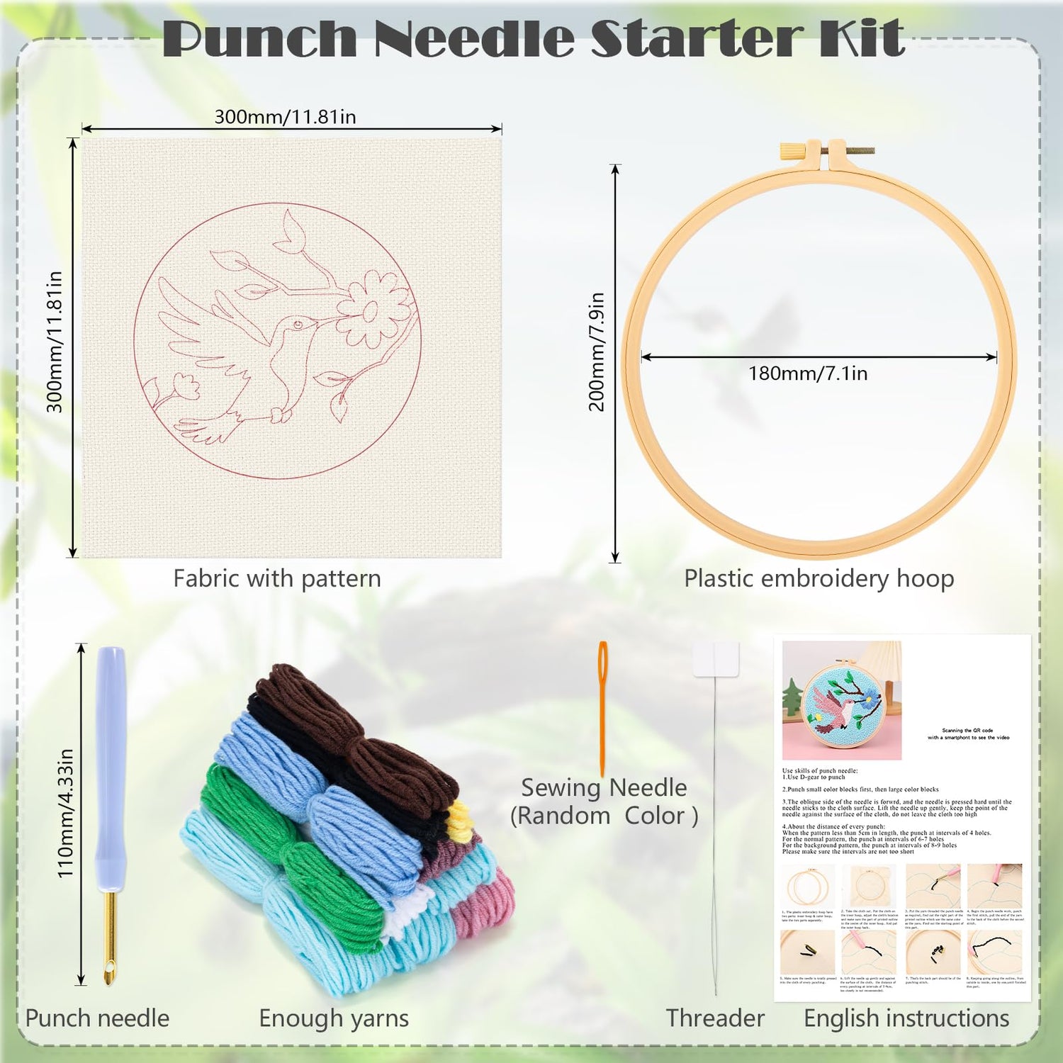 - Flower Bird Design: The punch needle embroidery kit features a design of hummingbird, flowers, and green leaves, full of vitality and suitable for both adults and kids. The motifs are pre-printed on the embroidery fabric, so please avoid contact with water before completing the embroidery process