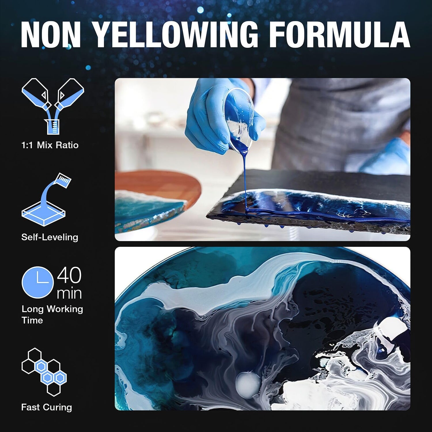 • Perfect Epoxy Resin: After years of research and improvement, with unparalleled crystal-like transparency, stays clear, without yellowing, high gloss finish, better release of the creative potential, High-Quality for artwork